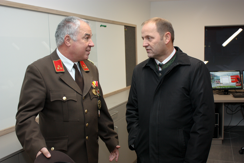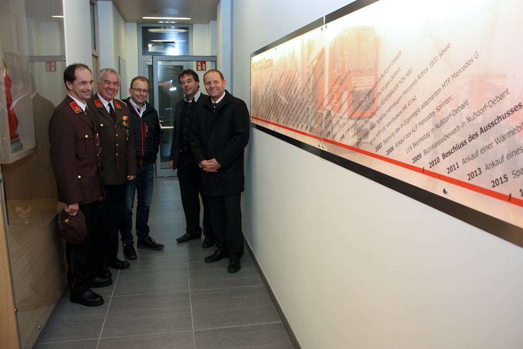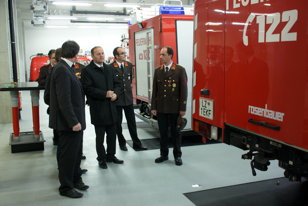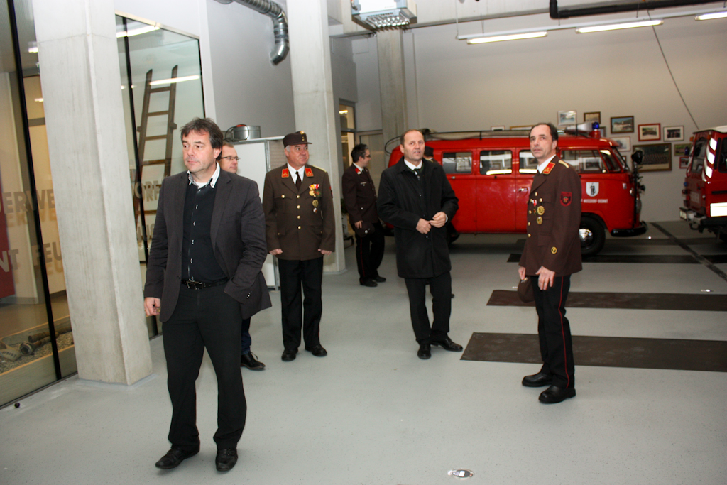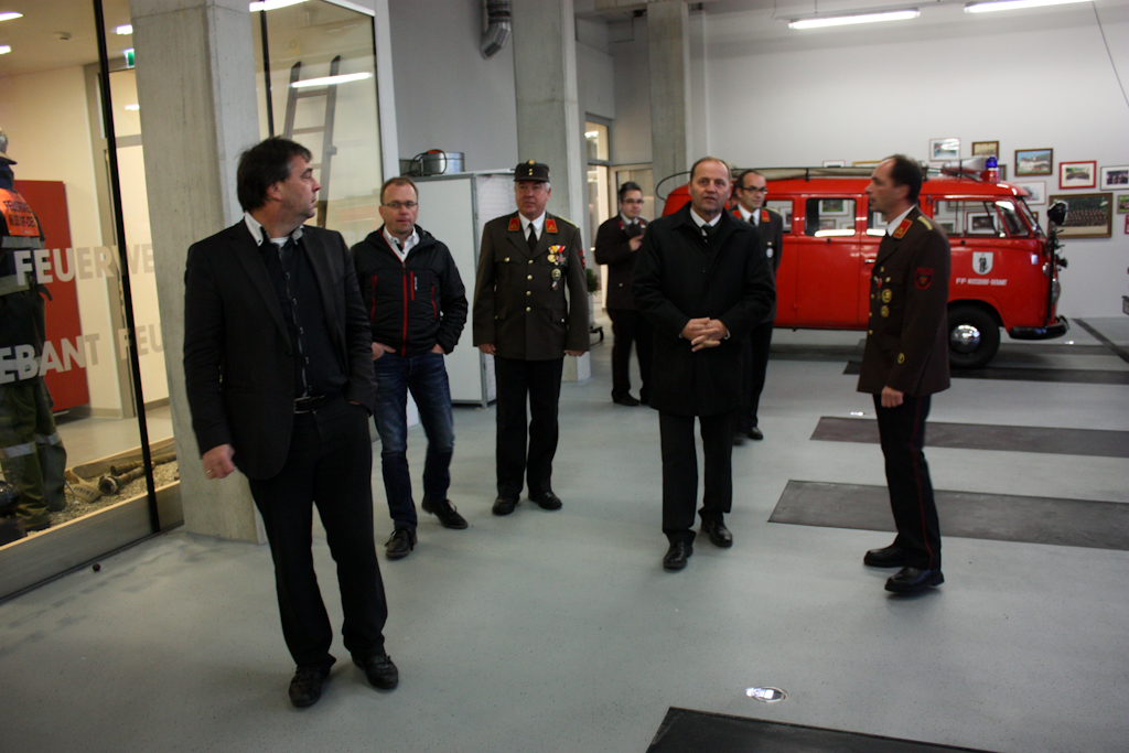 Nachdem Landeshauptmannstellvertreter ÖR Josef Geisler aus einem wichtigen anderweitigen Termin an der Gerätehausweihe des gemeinsamen Feuerwehrhauses Nußdorf-Debant im Oktober d.J. nicht teilnehmen konnte, stattete er am 29.11.2016 einen Besuch ab und überzeugte sich selbst vom äußerst gelungenen Werk. Begleitet wurde er von LA Ing. Martin Mayerl und Charly Kashofer. Gemeinsam mit Bürgermeister Ing. Andreas Pfurner, Kommandant Ing. Florian Meier, Kommandant-Stellvertreter Andreas Guggenberger, Kassier Michael Schlemmer, Zugskommandant Christian Brugger sowie Alt-Kommandant und Ehrenmitglied Norbert Brugger konnte sich der für das Feuerwehrwesen zuständige Landeshauptmann-Stellvertreter über die gelungene Realisierung des gemeinsamen Feuerwehrhauses in der Florianistraße freuen.