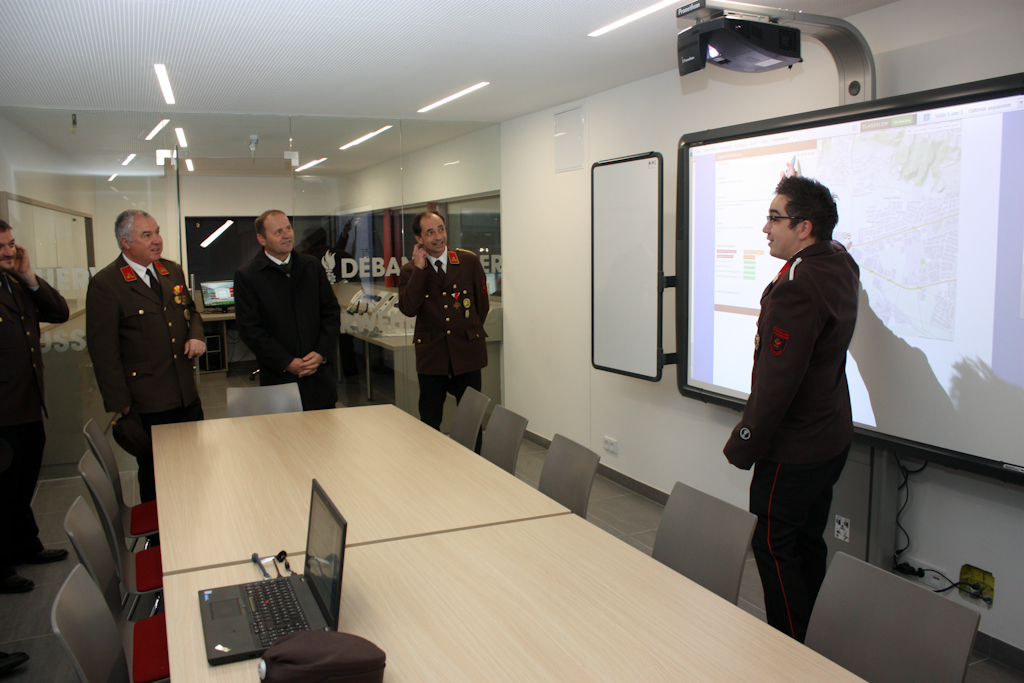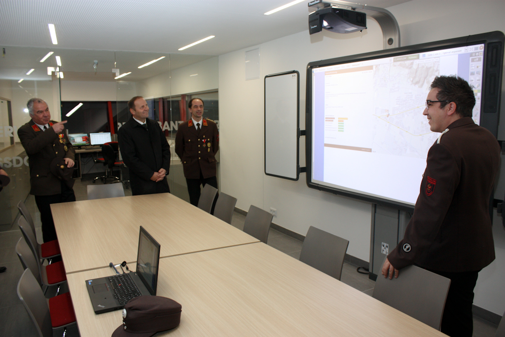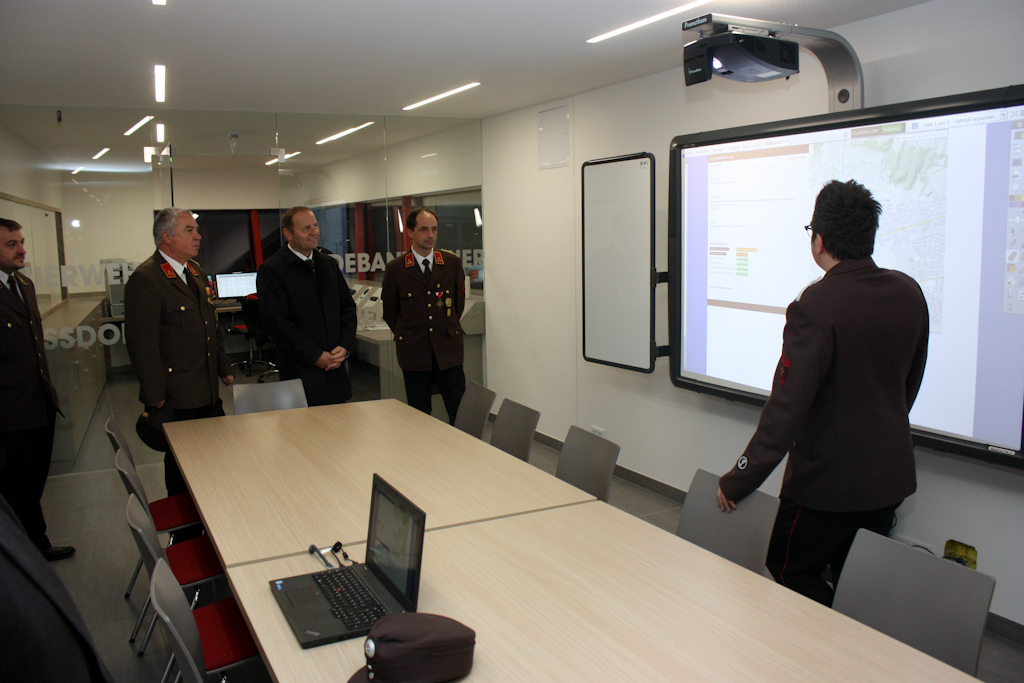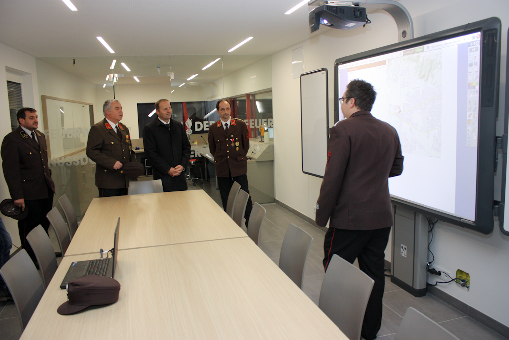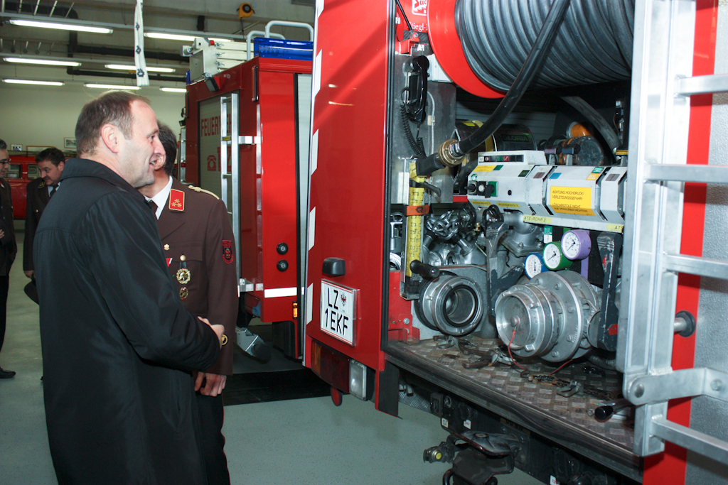 Nachdem Landeshauptmannstellvertreter ÖR Josef Geisler aus einem wichtigen anderweitigen Termin an der Gerätehausweihe des gemeinsamen Feuerwehrhauses Nußdorf-Debant im Oktober d.J. nicht teilnehmen konnte, stattete er am 29.11.2016 einen Besuch ab und überzeugte sich selbst vom äußerst gelungenen Werk. Begleitet wurde er von LA Ing. Martin Mayerl und Charly Kashofer. Gemeinsam mit Bürgermeister Ing. Andreas Pfurner, Kommandant Ing. Florian Meier, Kommandant-Stellvertreter Andreas Guggenberger, Kassier Michael Schlemmer, Zugskommandant Christian Brugger sowie Alt-Kommandant und Ehrenmitglied Norbert Brugger konnte sich der für das Feuerwehrwesen zuständige Landeshauptmann-Stellvertreter über die gelungene Realisierung des gemeinsamen Feuerwehrhauses in der Florianistraße freuen.