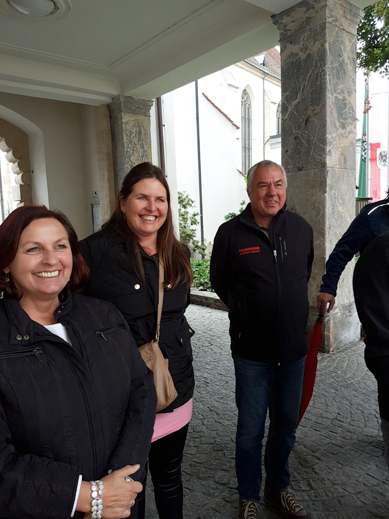 Nach einem ausgiebigen Frühstück bei der Raststätte Mochoritsch in Griffen folgte eine sehr informative Stadtführung in Graz. Dabei wurden wir auch vom (zufällig) vorbeikommenden Landeshauptmann Hermann Schützenhofer begrüßt.