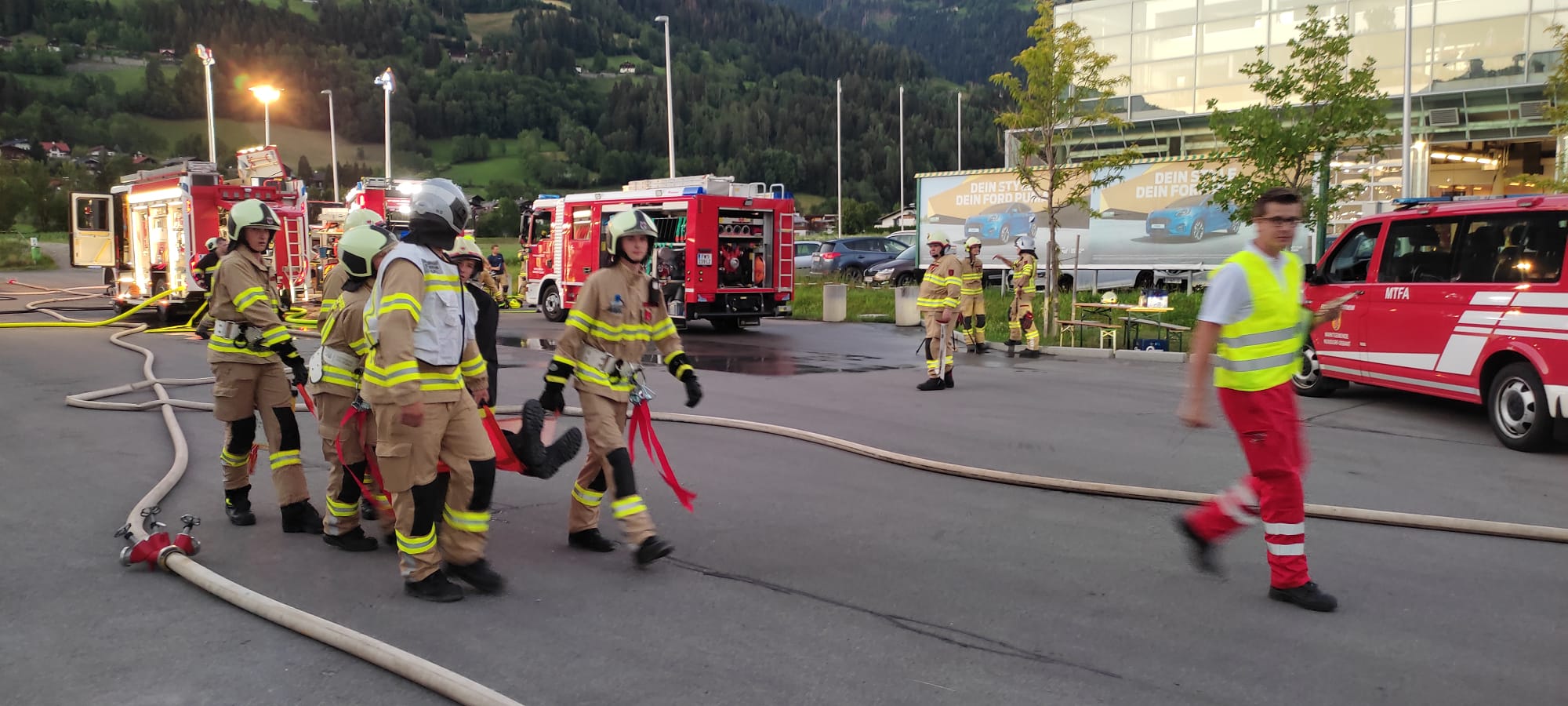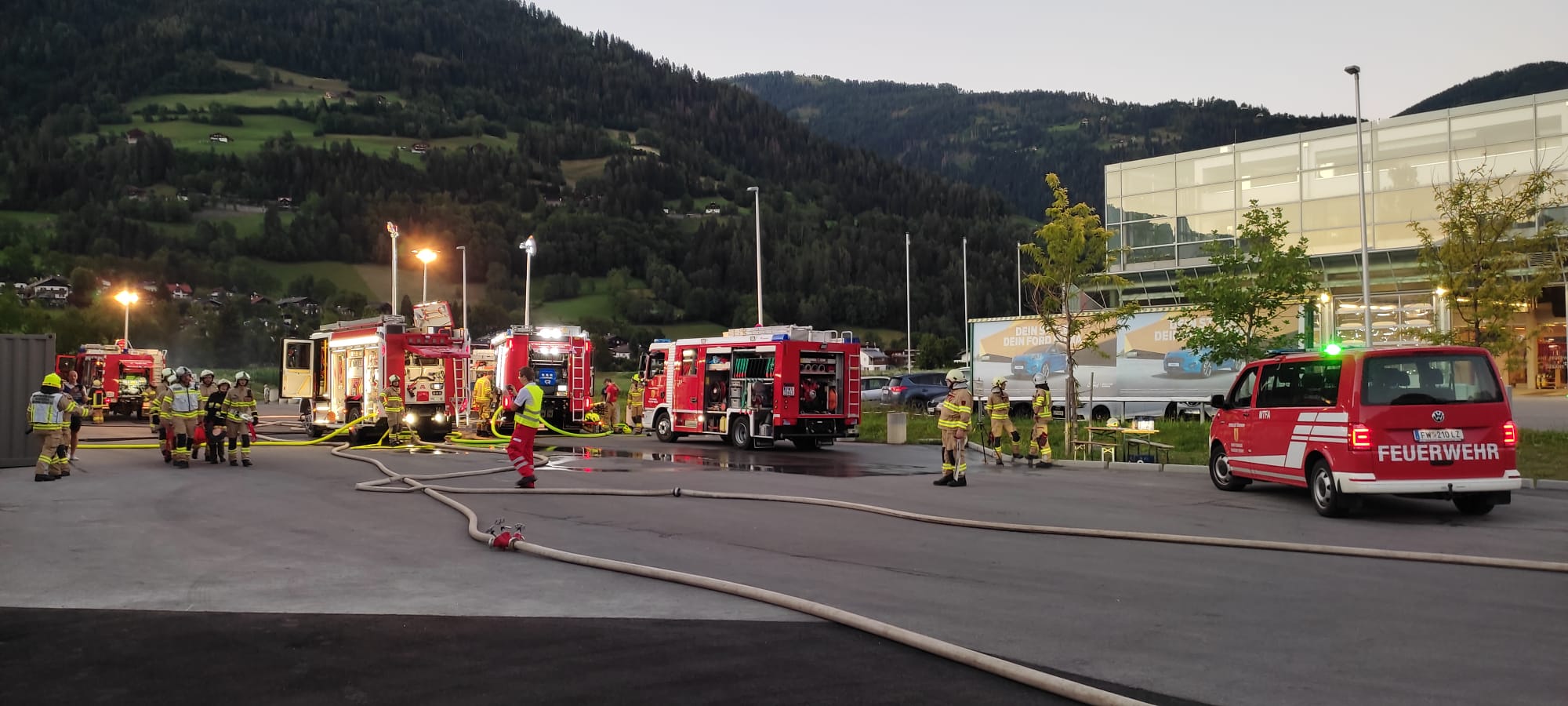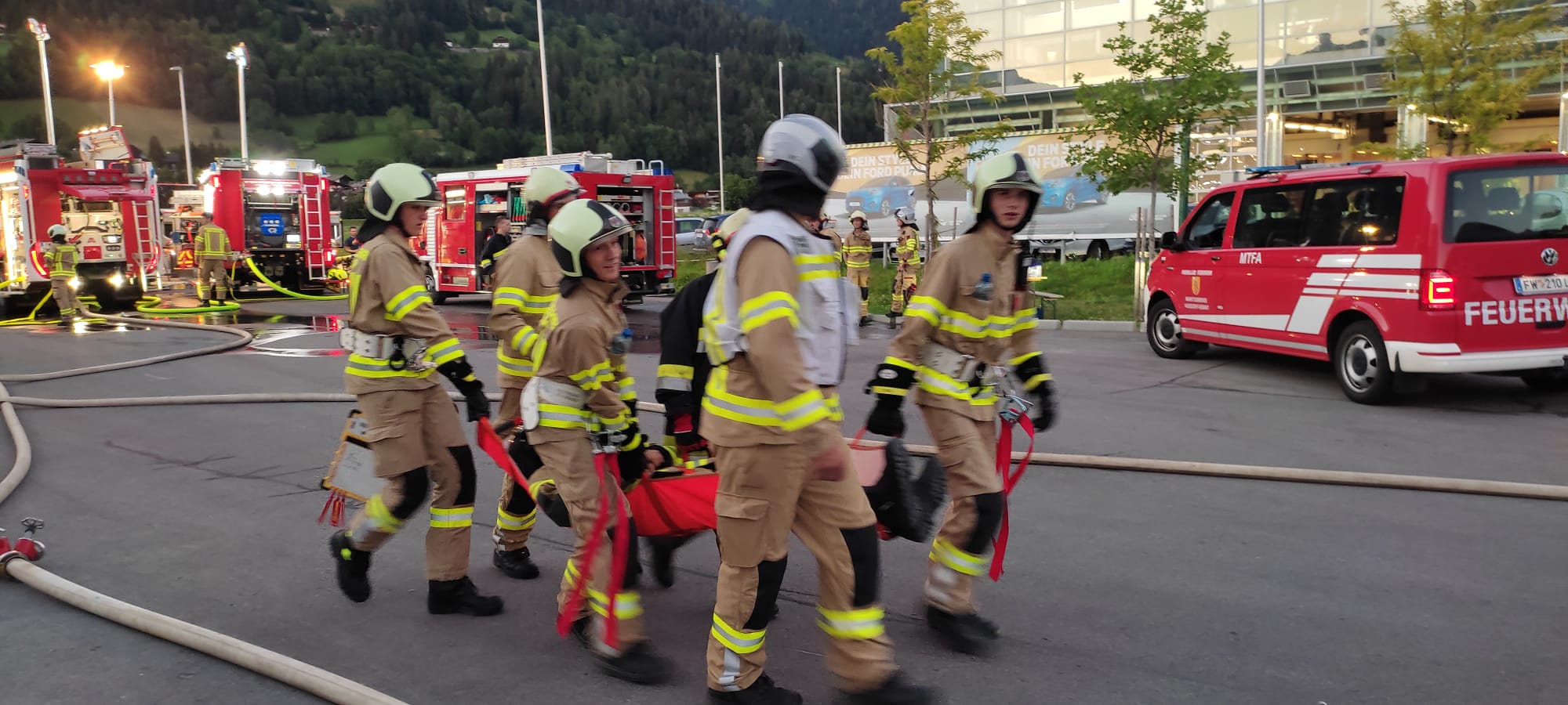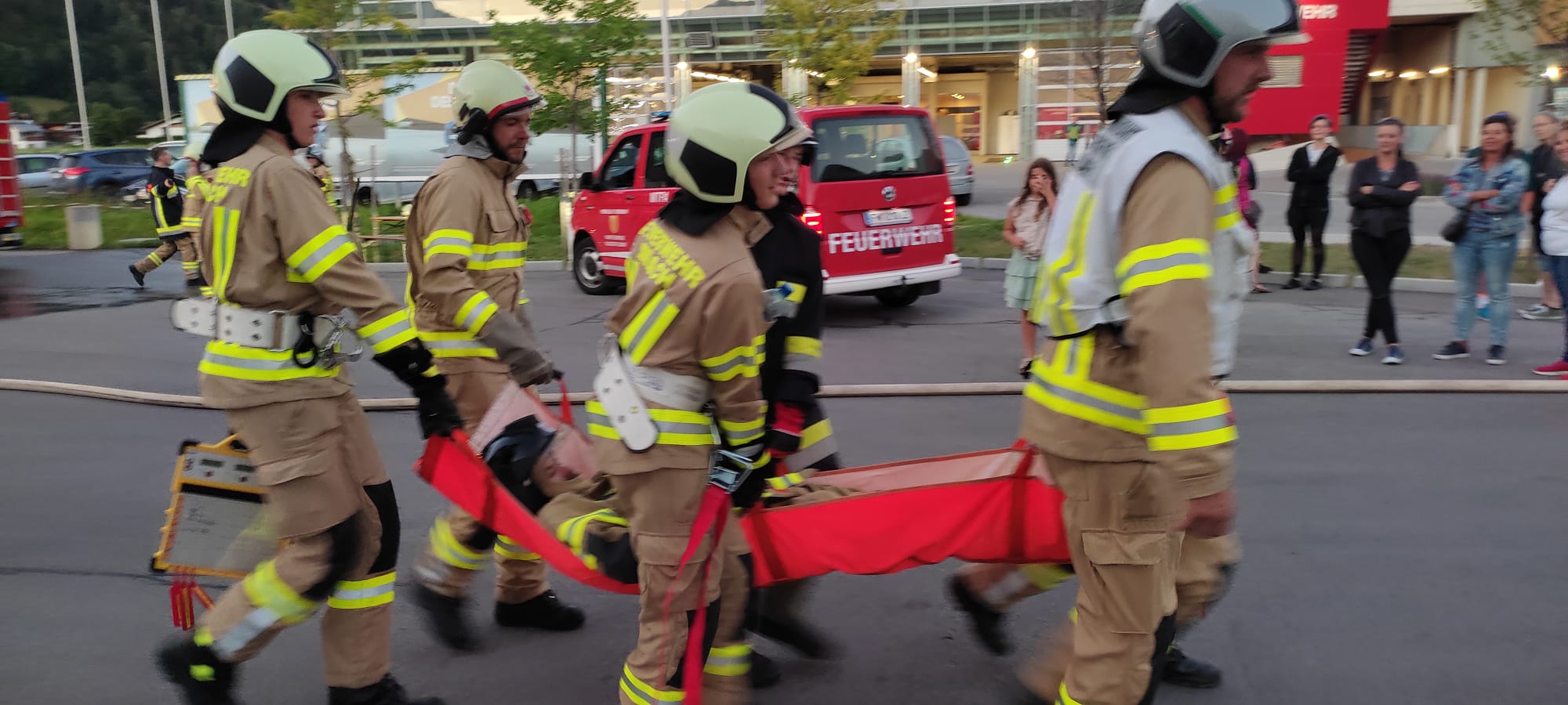 Übungsannahme war ein Brandgeschehen beim Interspar Hypermarkt in Nussdorf-Debant mit mehreren vermissten sowie verletzten Personen nach einem gemeldeten Brandmeldealarm.