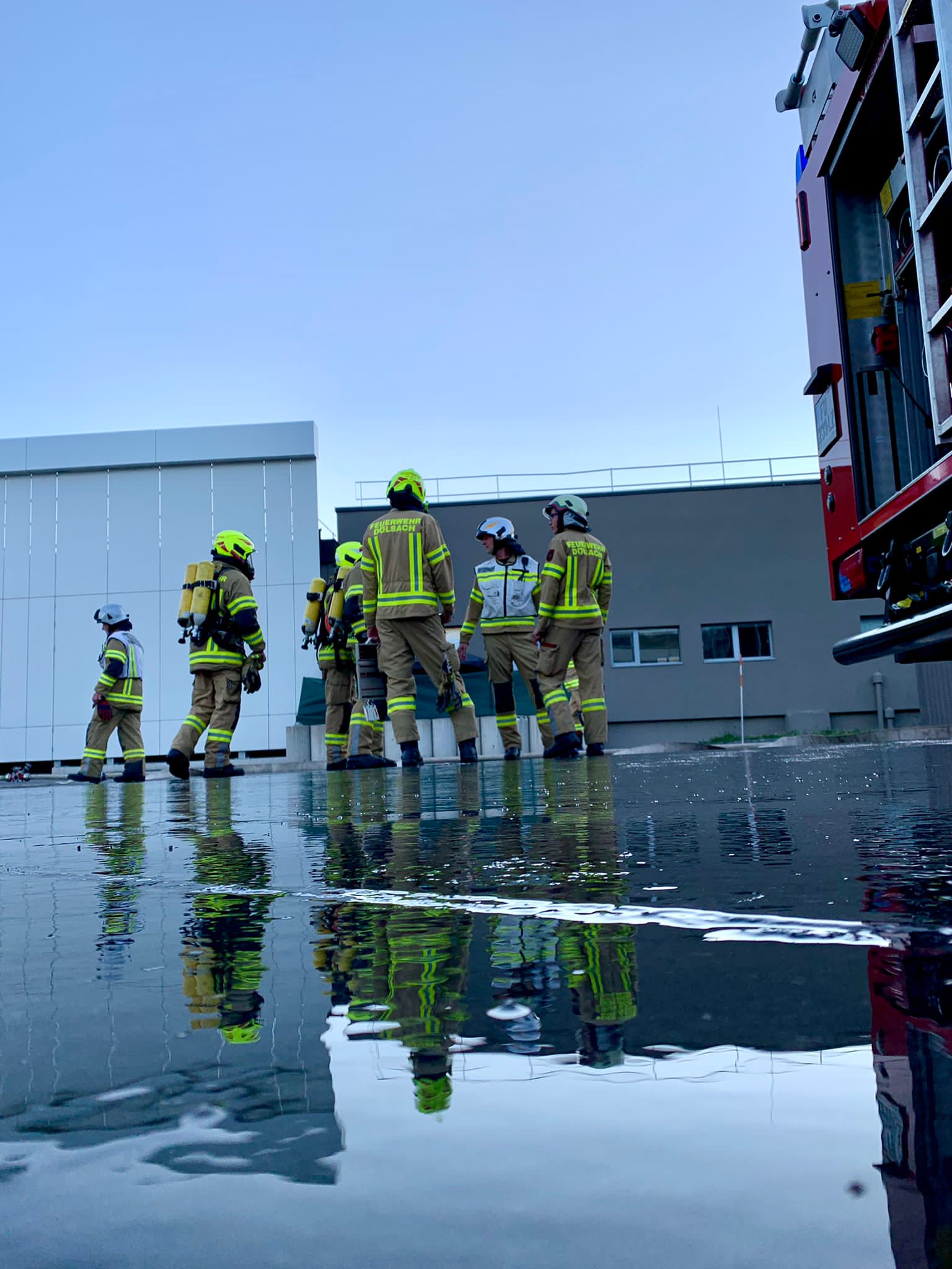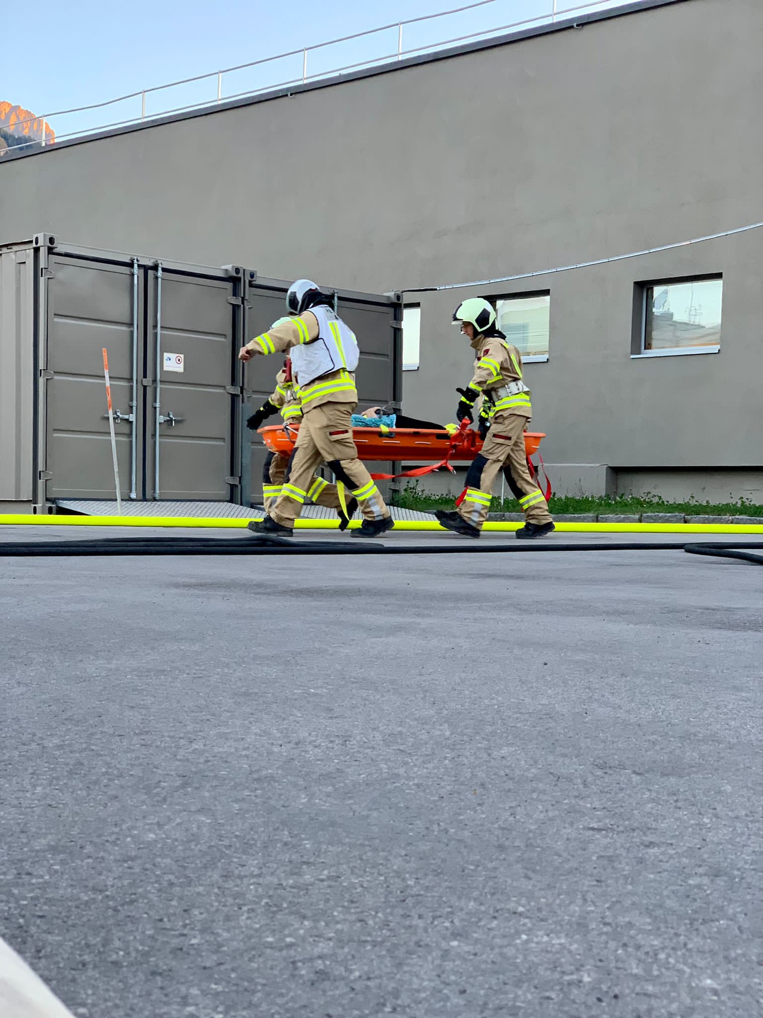 Die Personen, die in dem stark verrauchten Gebäude unter einem Klein-Stapler eingeklemmt, im Heizraum gestürzt sowie anderweitig vermisst waren, wurden vom Atemschutztrupp u.A. mittels Hebekissen befreit, und jegliche andere verletzten Personen der Rettung für die Triage übergeben.