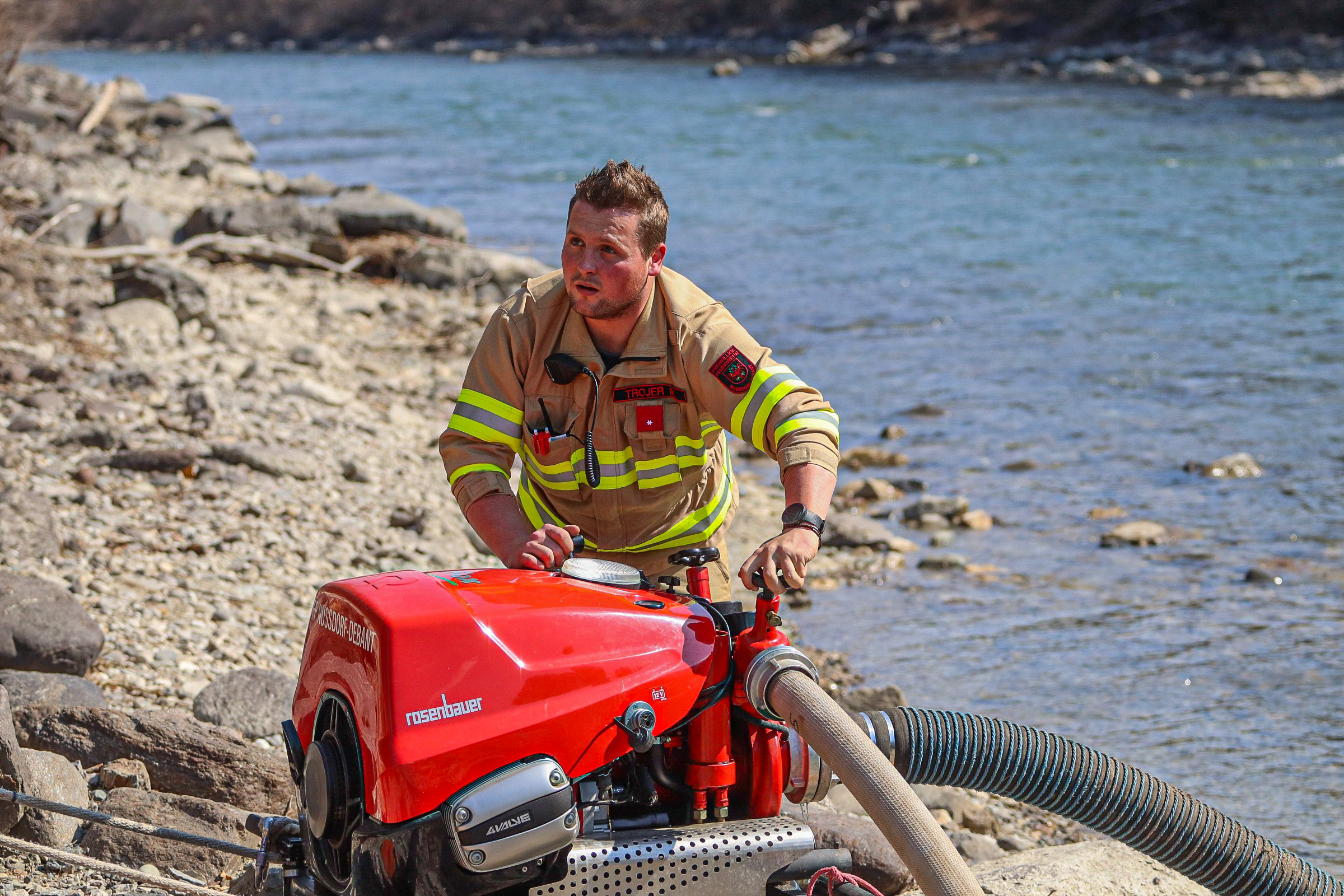 Das Ansaugen im Fluss mittels Schwimmsauger, die einzelnen Strahlrohre, die Strahlrohrführung, der Powermoon und viele weiter Gerätschaften konnten erklärt und beübt werden, damit der richtige sowie sichere Umgang im Einsatz gewährleistet ist.