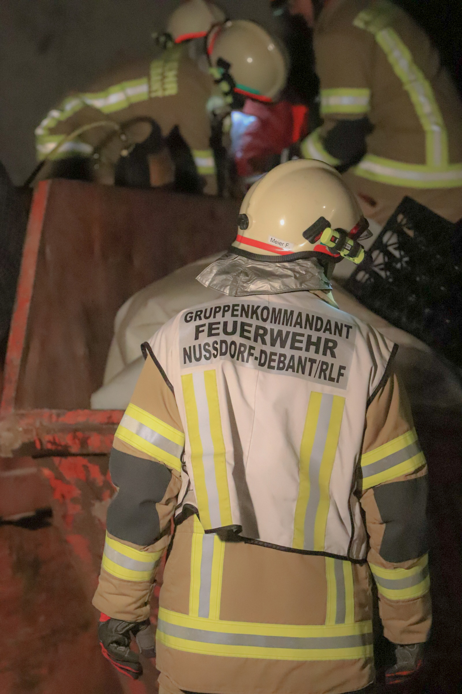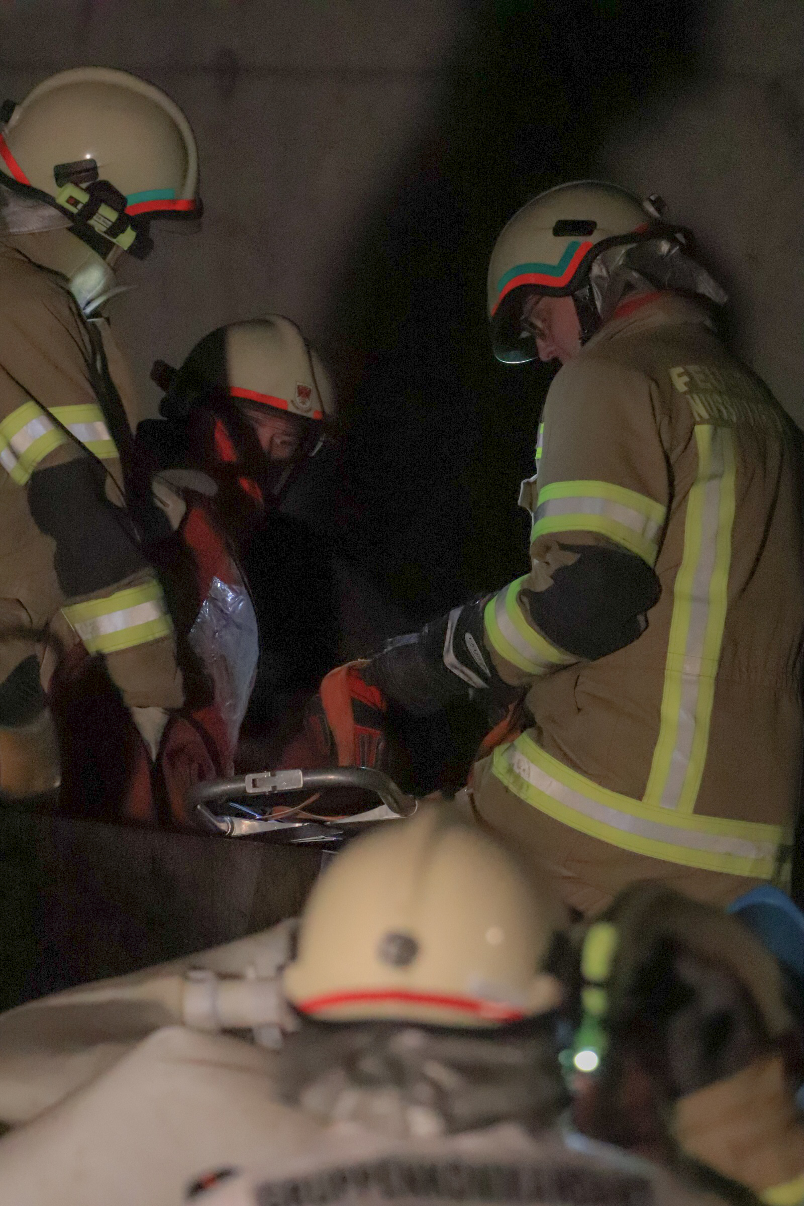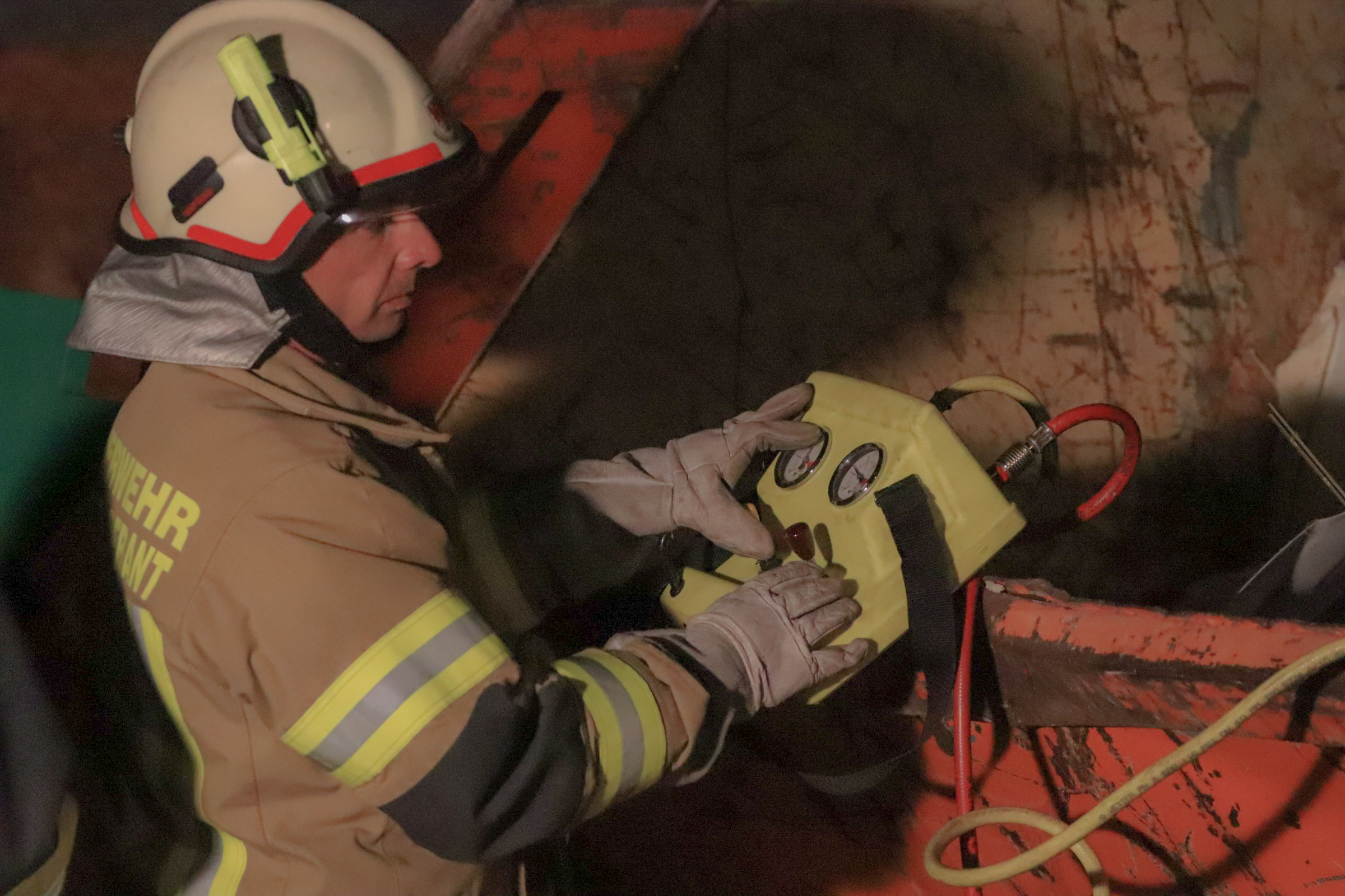 Parallel wurden die eingeklemmten Personen mittels Hebekissen befreit und der Rettung übergeben. Da jedoch der Fahrer des Radladers nicht aufzufinden war, wurde ein Suchtrupp losgeschickt, um den vermissten aufzufinden.