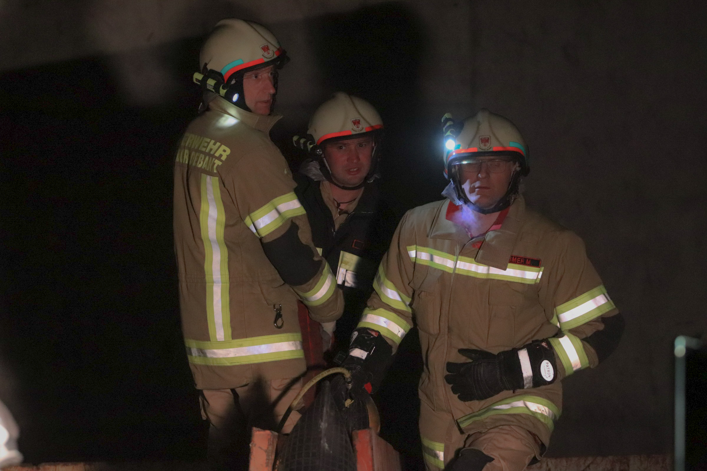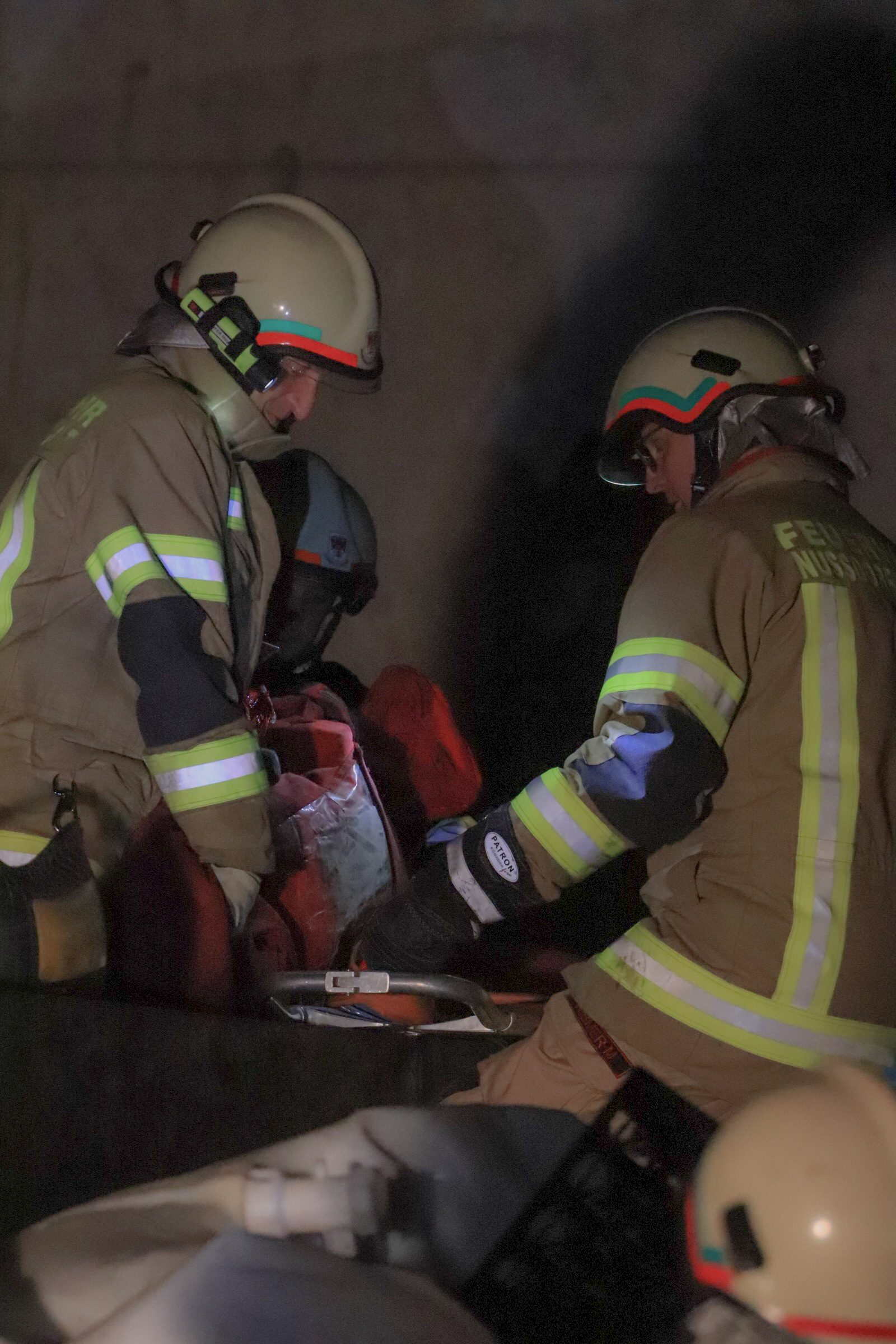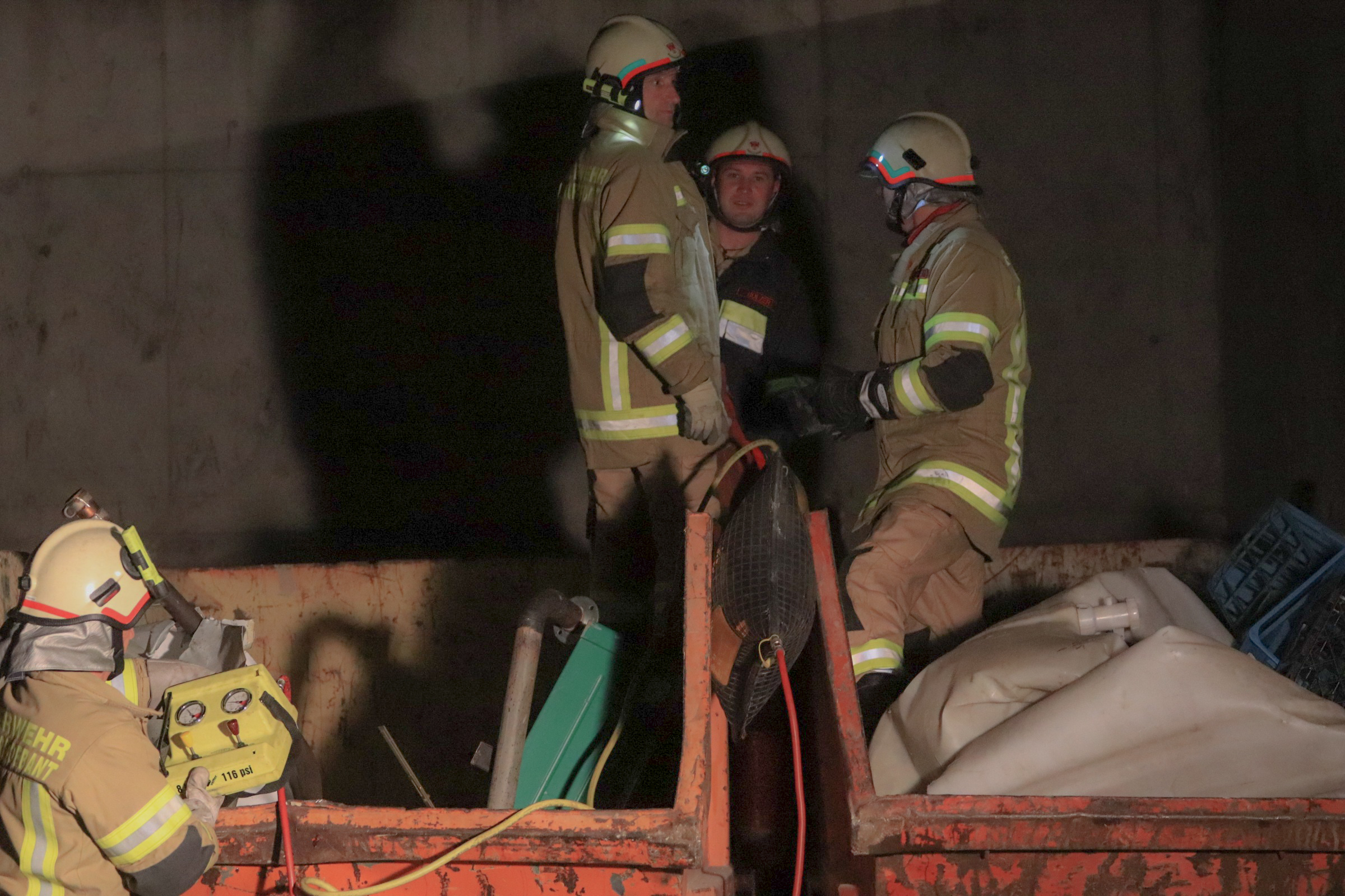 Parallel wurden die eingeklemmten Personen mittels Hebekissen befreit und der Rettung übergeben. Da jedoch der Fahrer des Radladers nicht aufzufinden war, wurde ein Suchtrupp losgeschickt, um den vermissten aufzufinden.