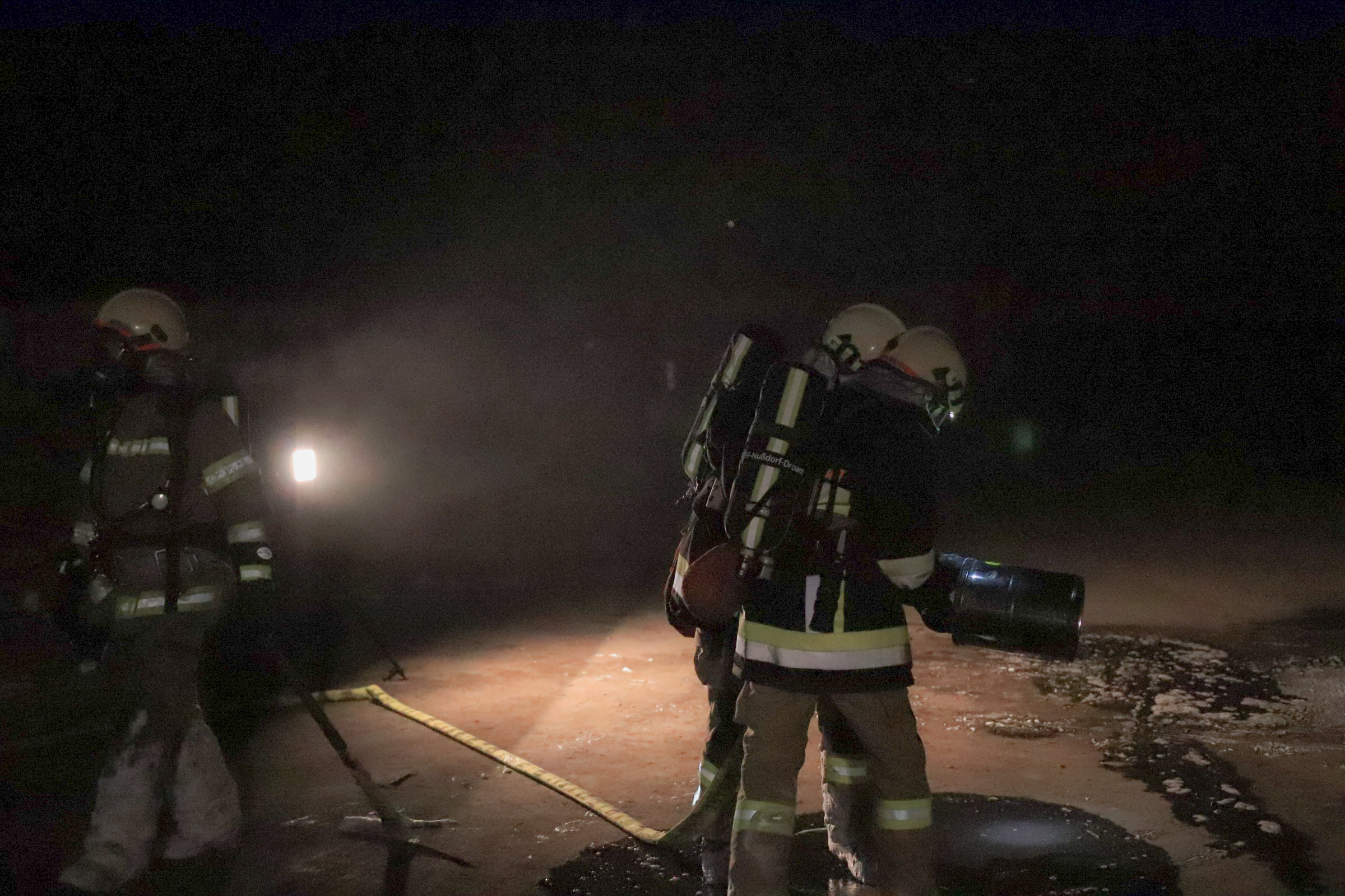 Als wir am Übungs-/Einsatzort eintrafen, wurde von der Einsatzleitung die Lage erkundet, wobei sofort mit dem Tanklöschfahrzeug unter schwerem Atemschutz mittels HD ein Erstangriff vorgenommen wurde. Die Kameraden vom KLF haben umgehend eine Zubringerleitung vom neuen Hydranten aufgebaut und damit das TLF gespeist.