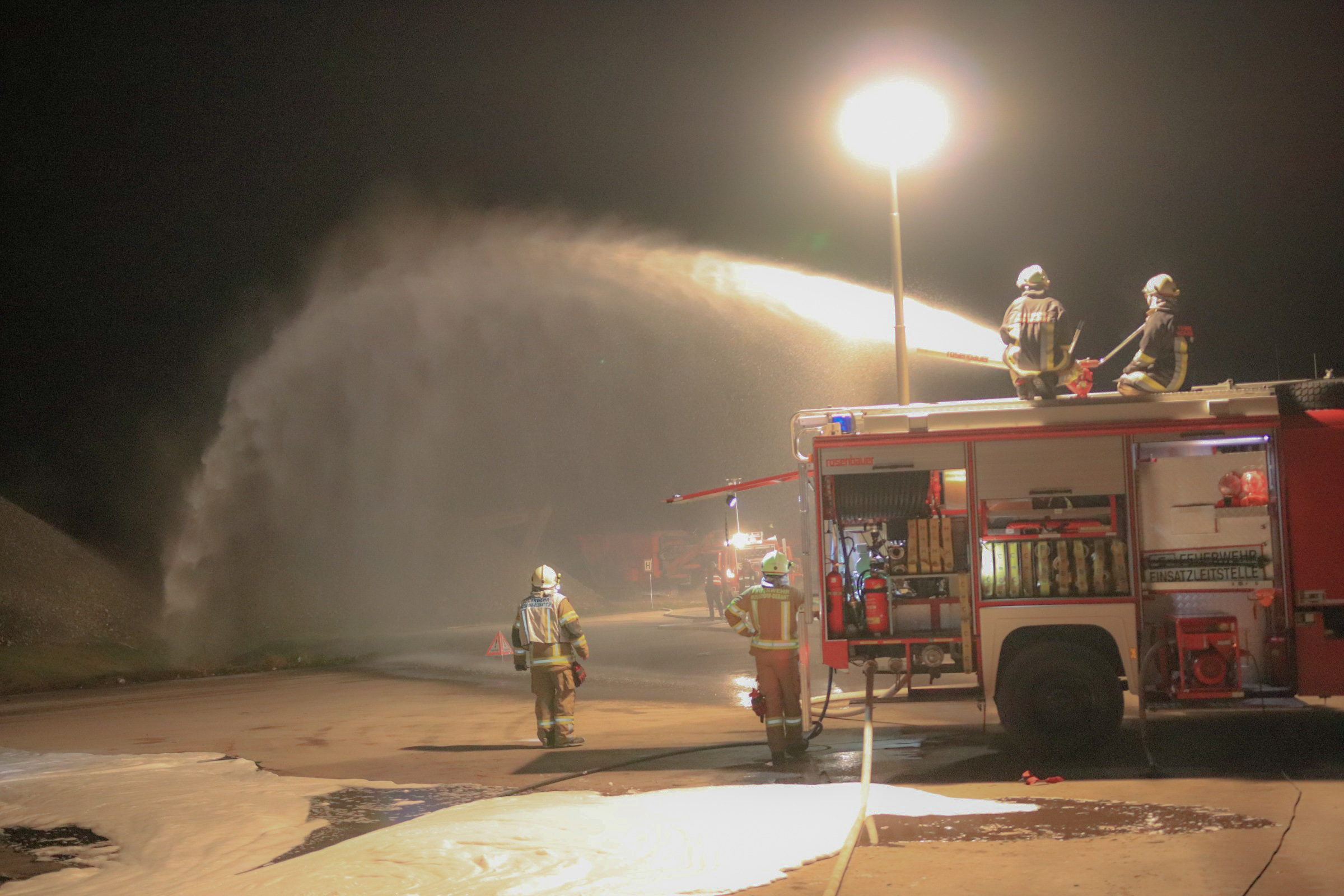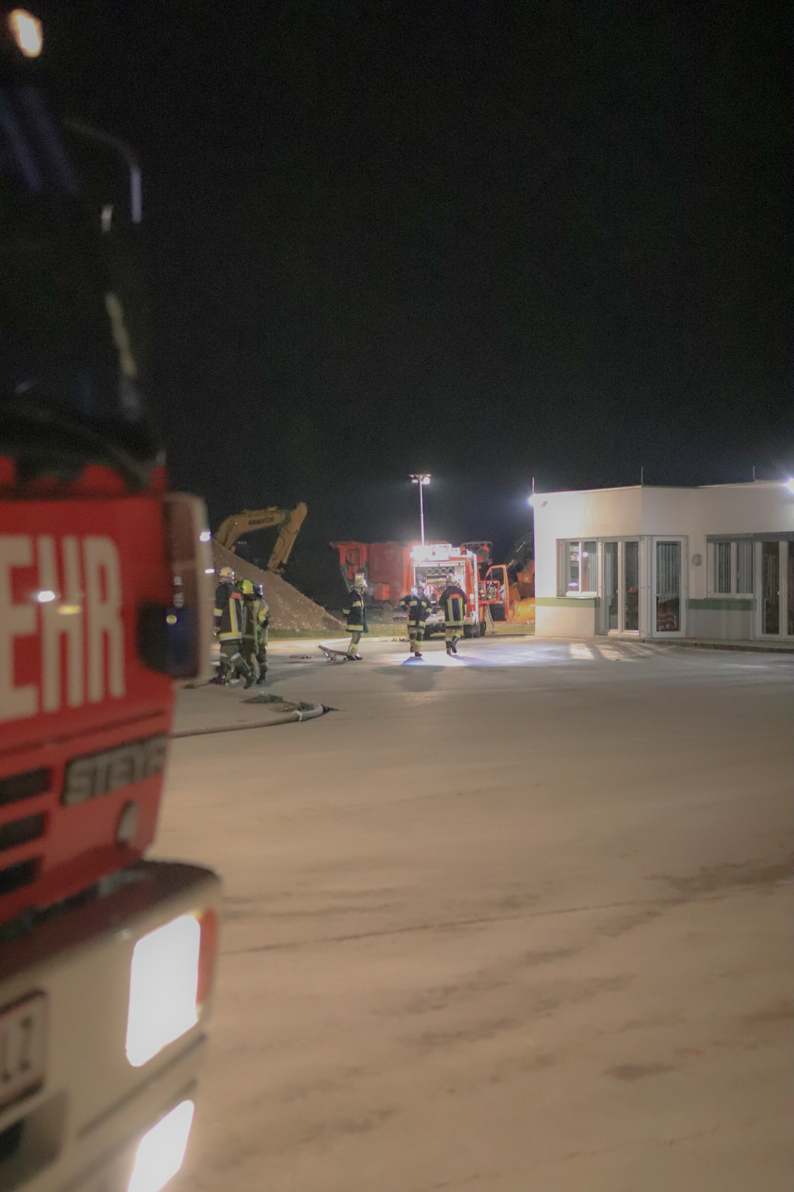 Übungsannahme war ein Brandalarm bei unserem örtlichen Abfallwirtschaftszentrum wobei am Gelände bei den Mitarbeitern aufgrund der starken Rauchentwicklung eine Panik entstand, und ein Radlader gegen einen Abfallcontainer gefahren ist, wodurch ein Vater mit seinem Kind eingeklemmt wurde und der Fahrer nicht mehr auffindbar war.