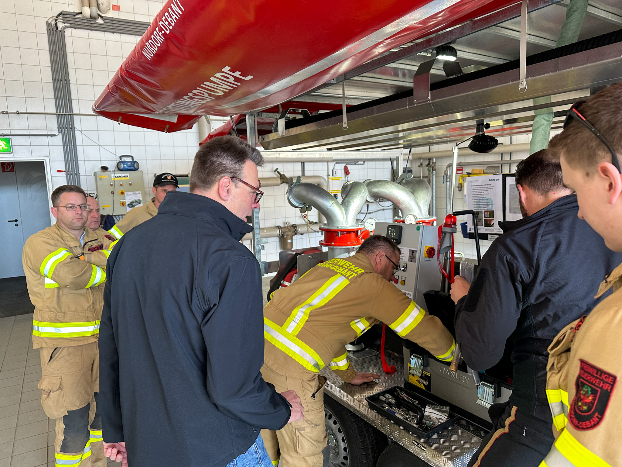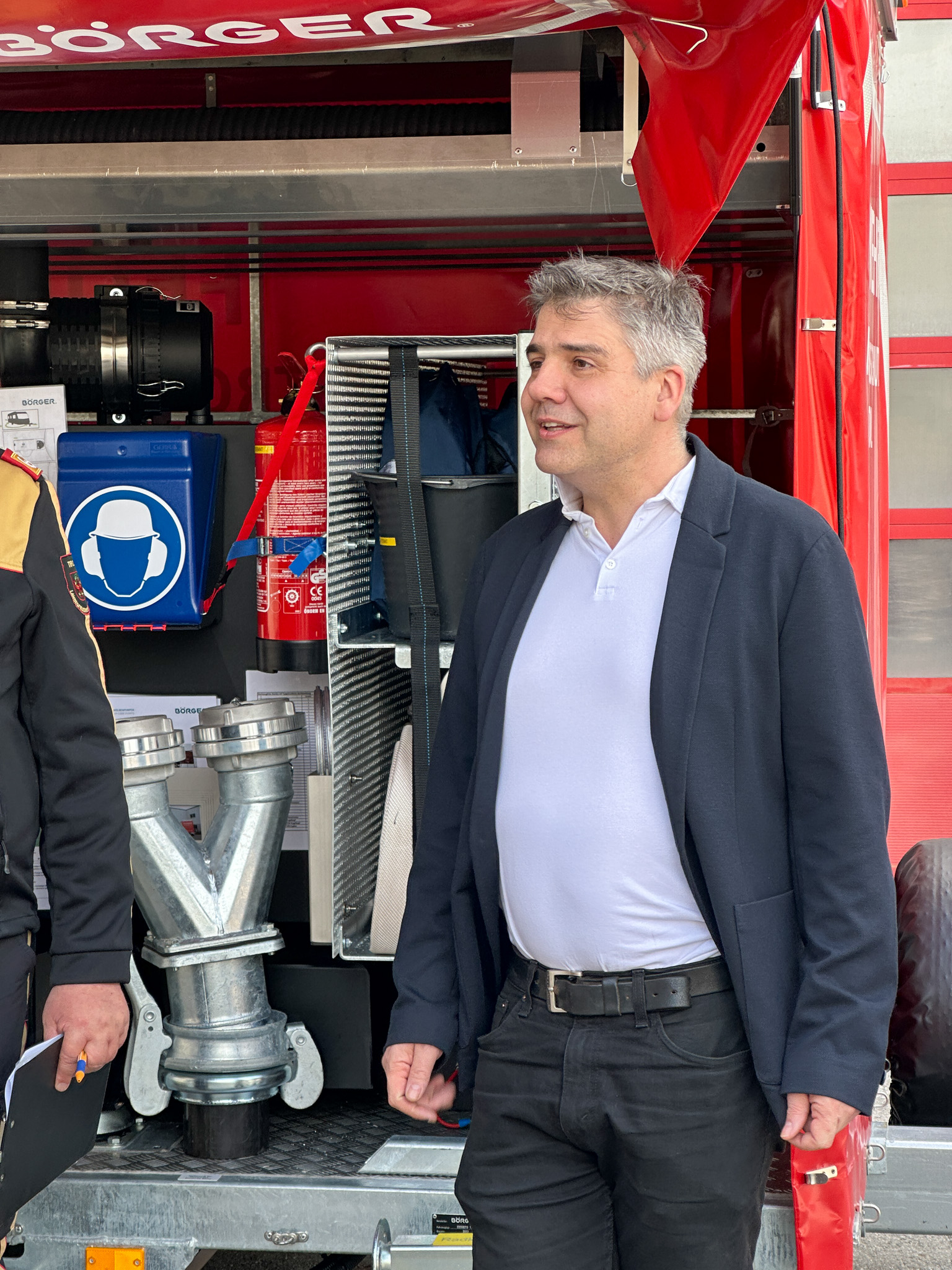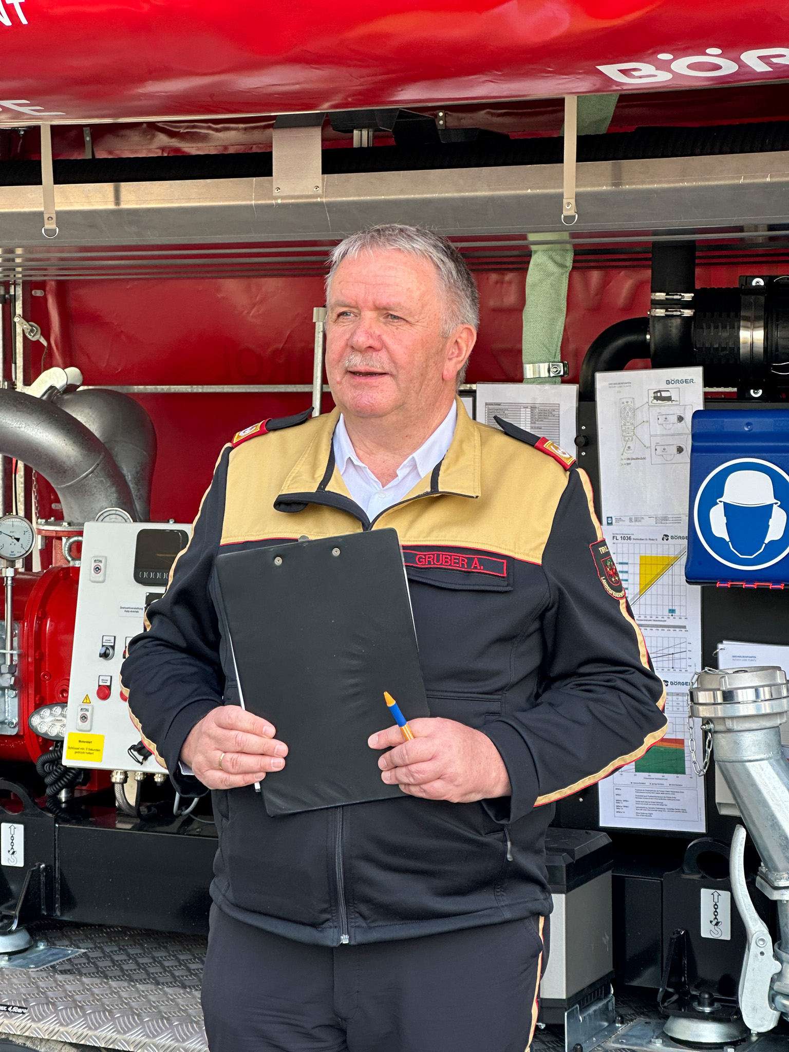 Die neue Großpumpe wurde vom Kommandant der Feuerwehr Nußdorf-Debant Christian Brugger sowie dem Bürgermeister der Marktgemeinde Nußdorf-Debant Ing. Andreas Pfurner gemeinsam mit Bezirks-Feuerwehrinspektor Franz Brunner und Bezirksfeuerwehrkommandant Harald Draxl und