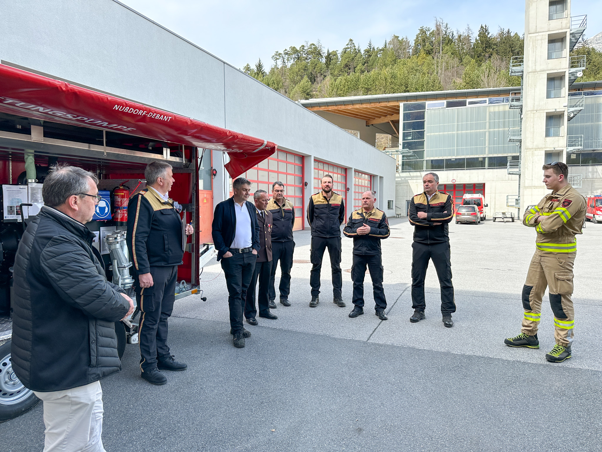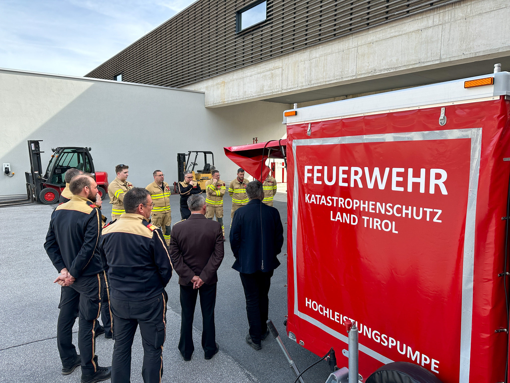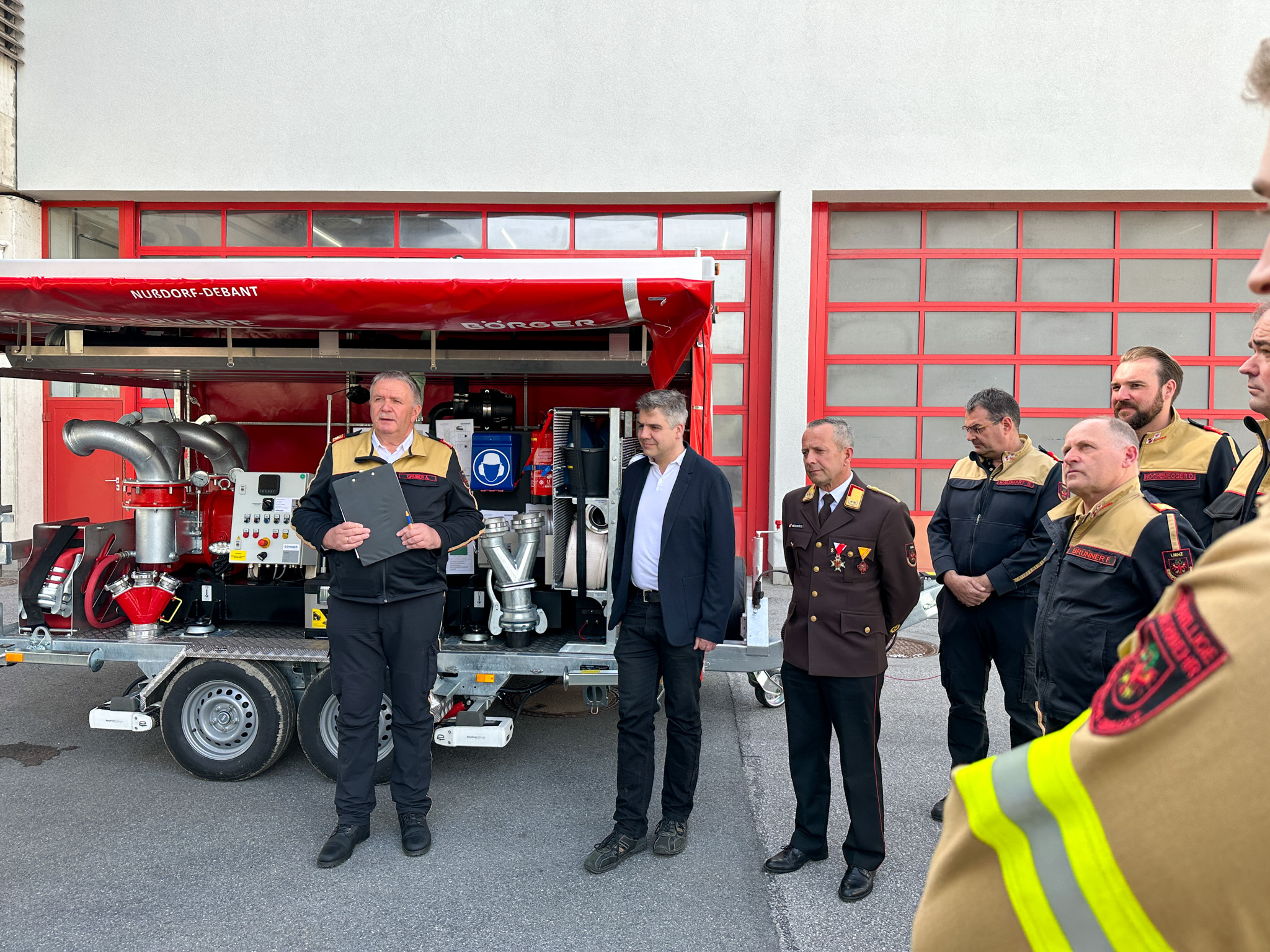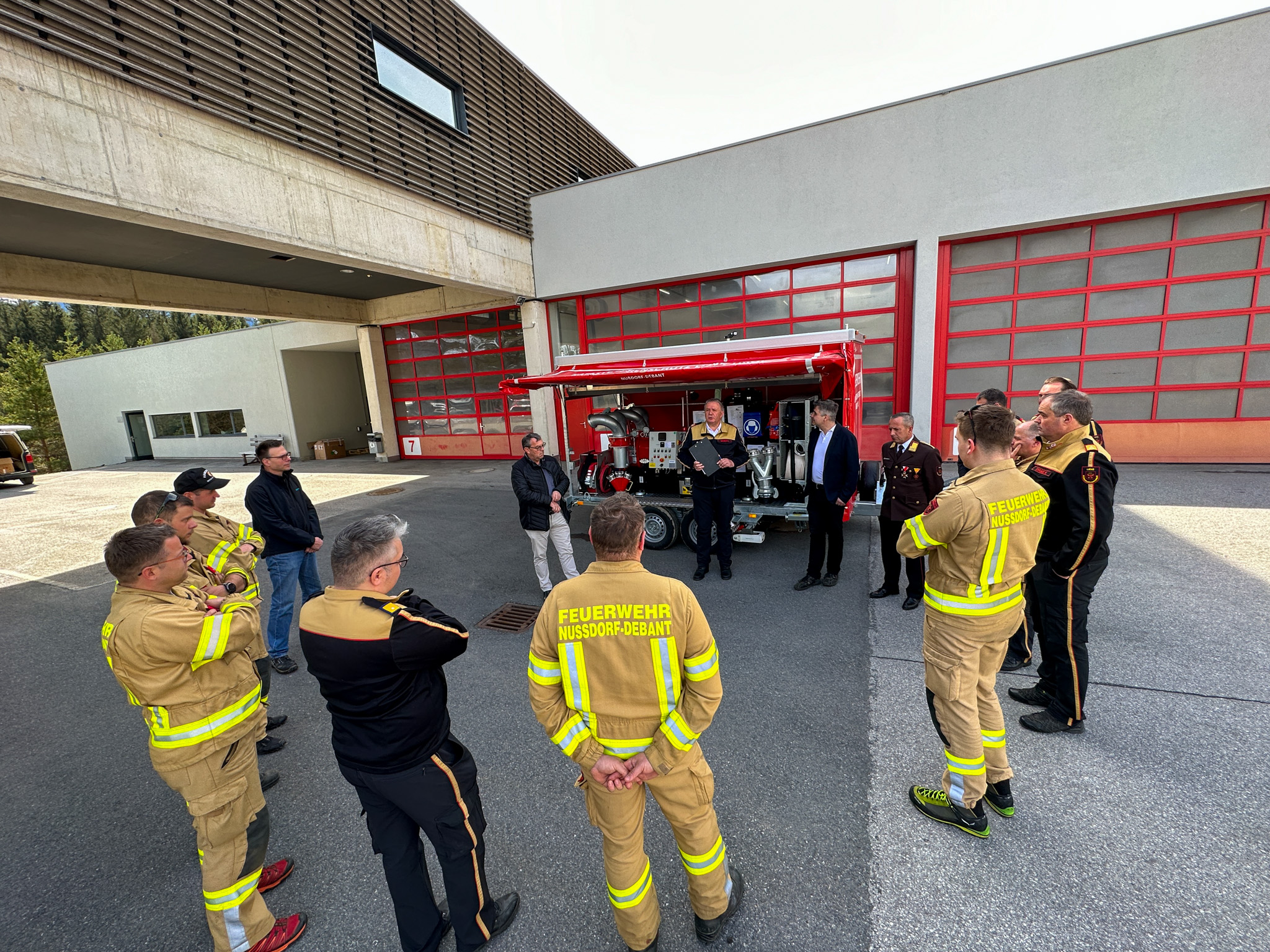 Im Zuge einer kleinen Feier wurde am 17. März 2023 vom Vertreter des Landes Tirol - Vorstand der Abteilung Einsatzorganisation Mag. Gernot Reister -, Landes-Feuerwehrkommandant Jakob Unterladstätter und Landes-Feuerwehrinspektor DI Alfons Gruber eine Hochleistungs-Großpumpe an die Feuerwehr Nußdorf-Debant übergeben.