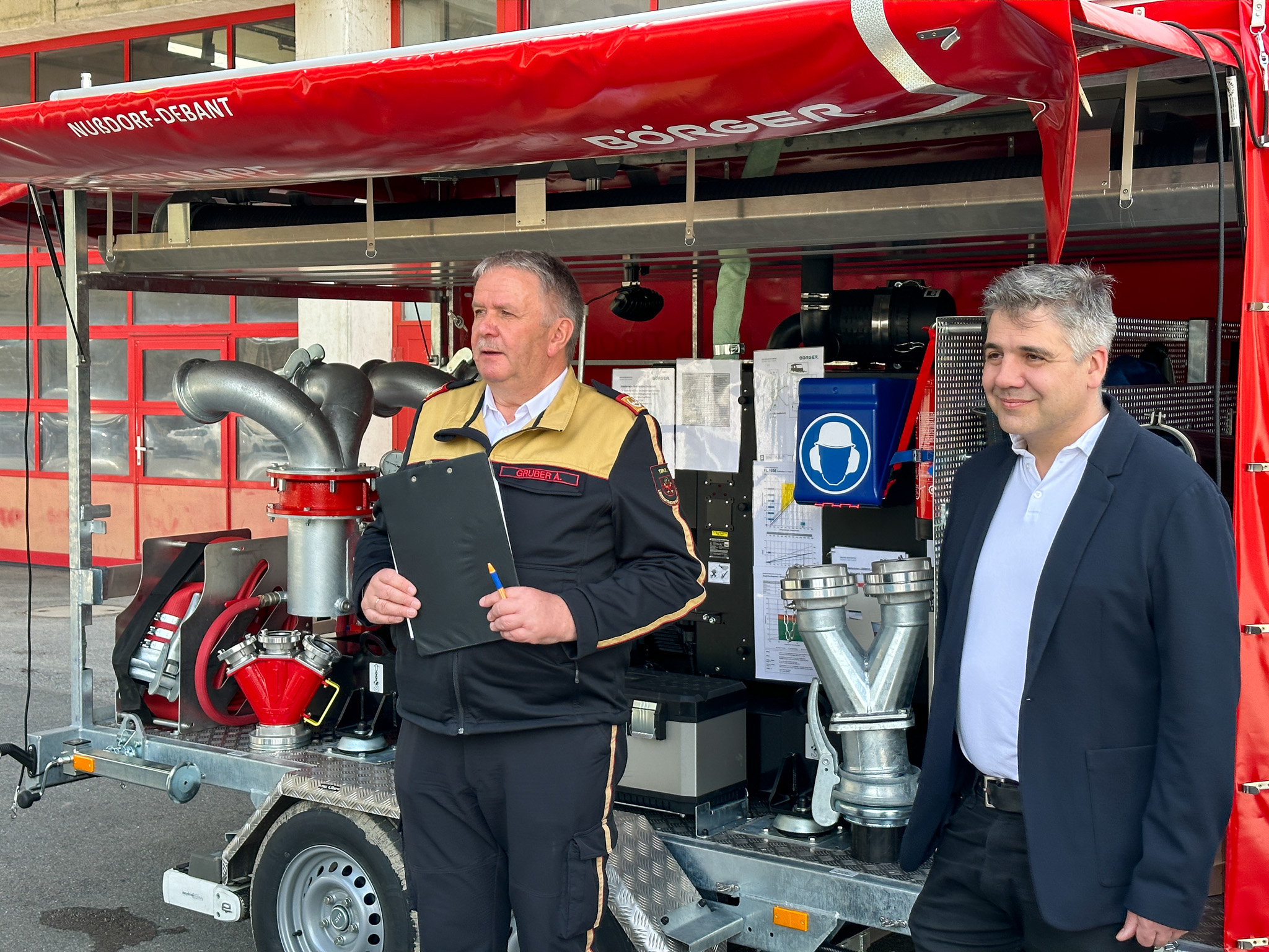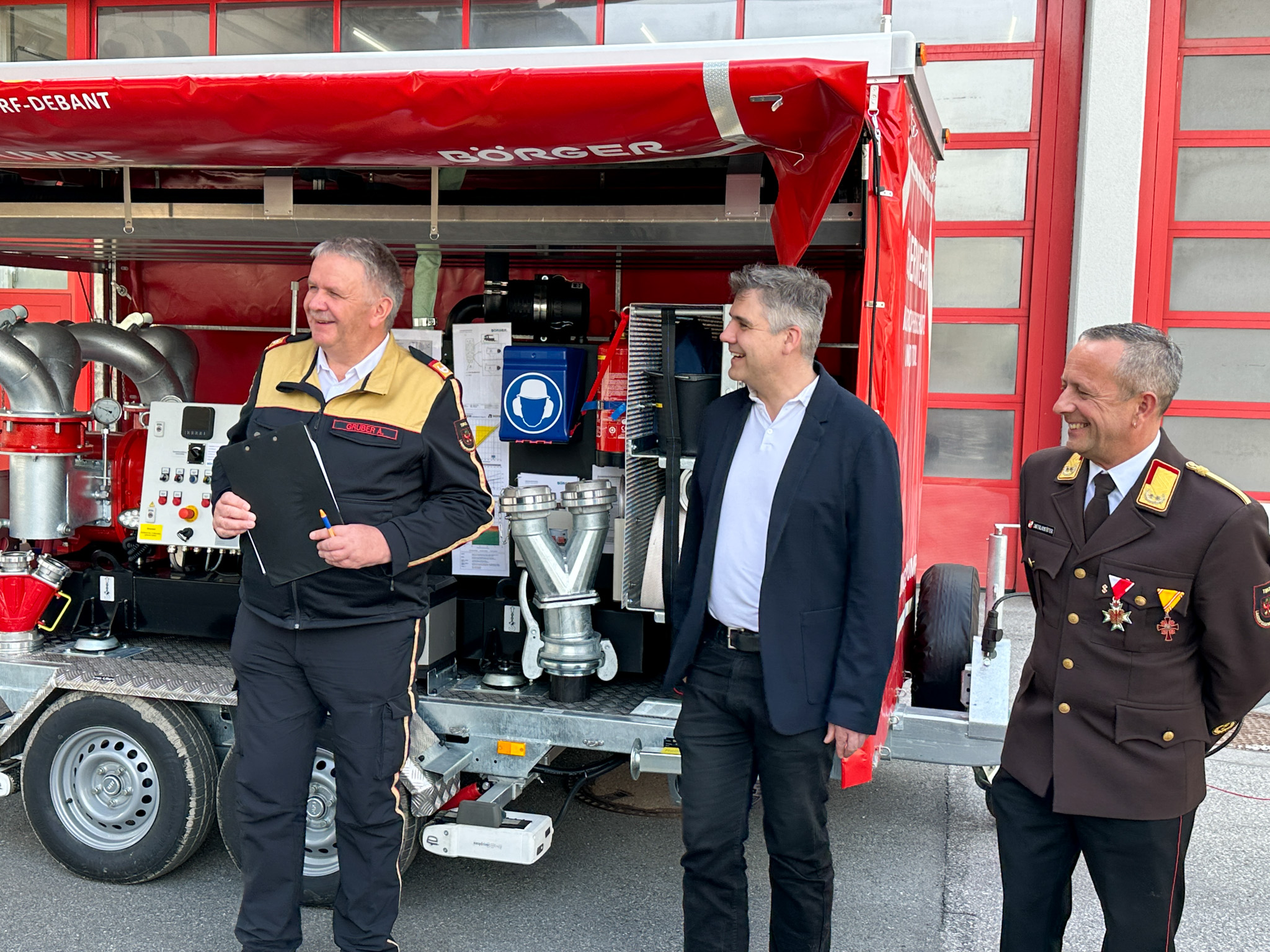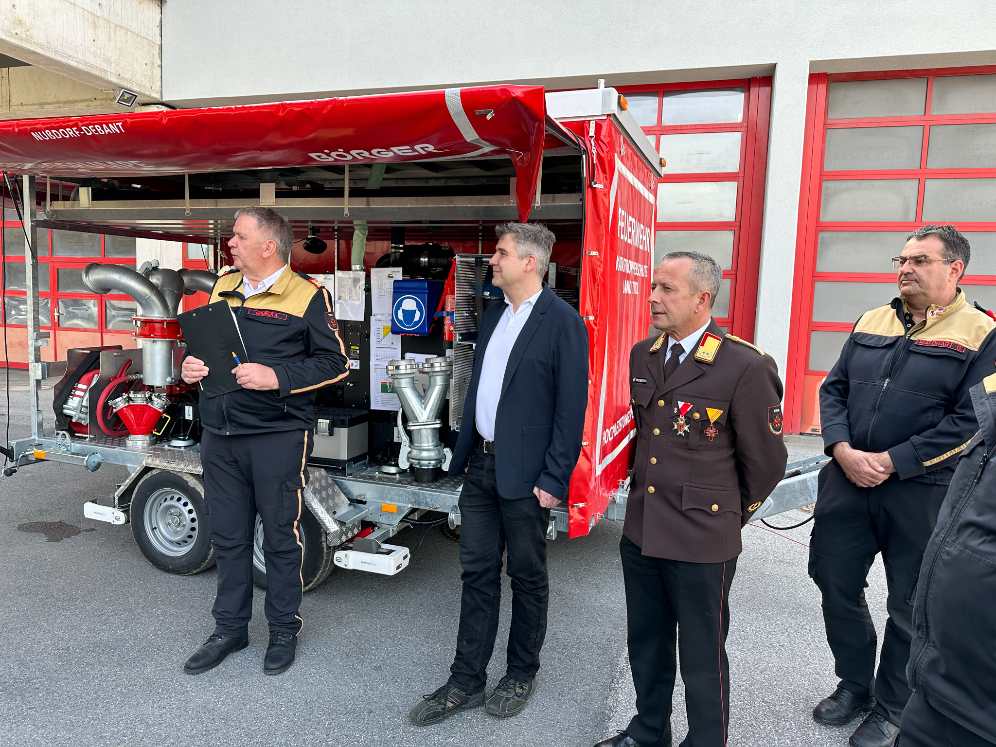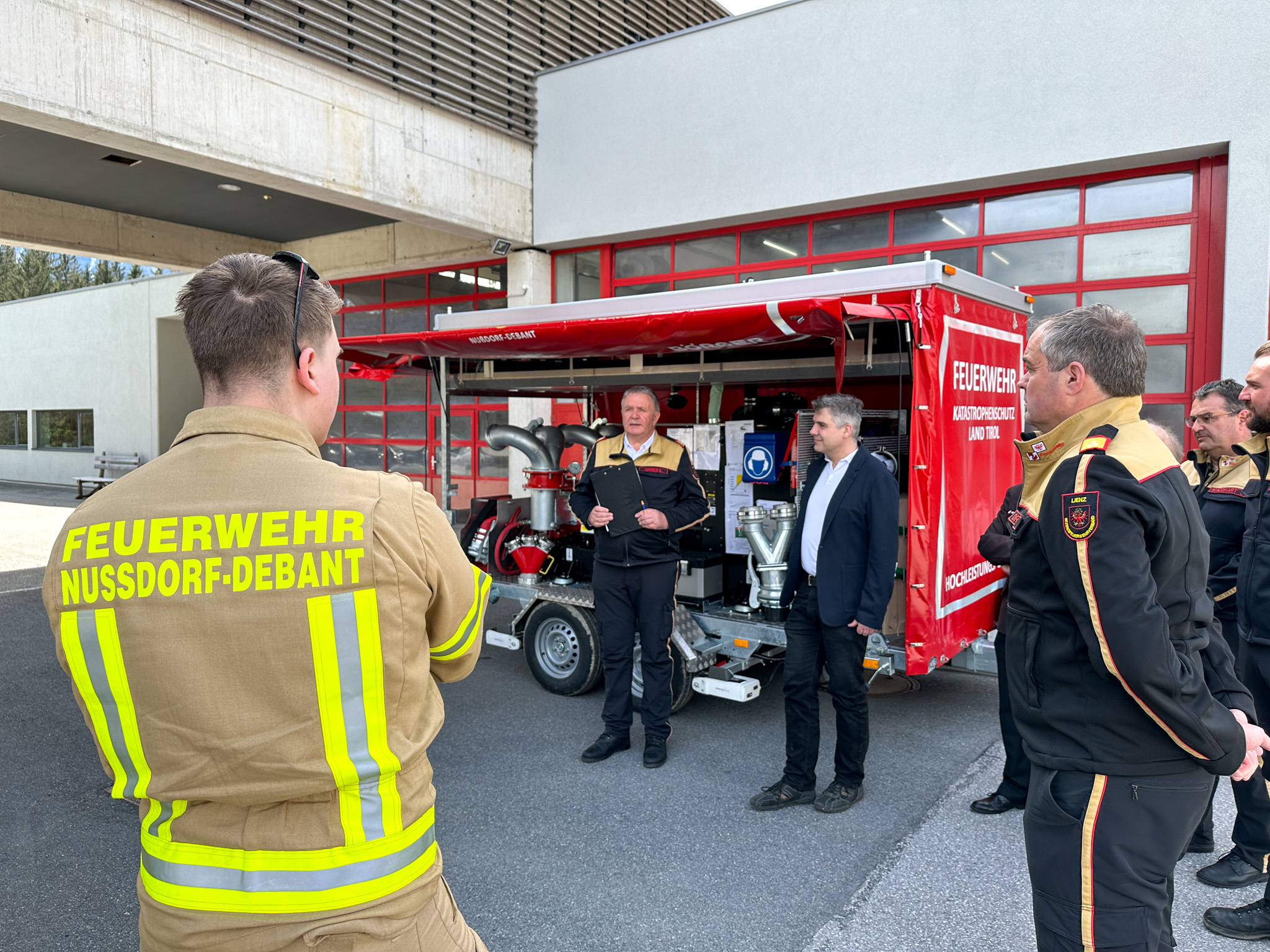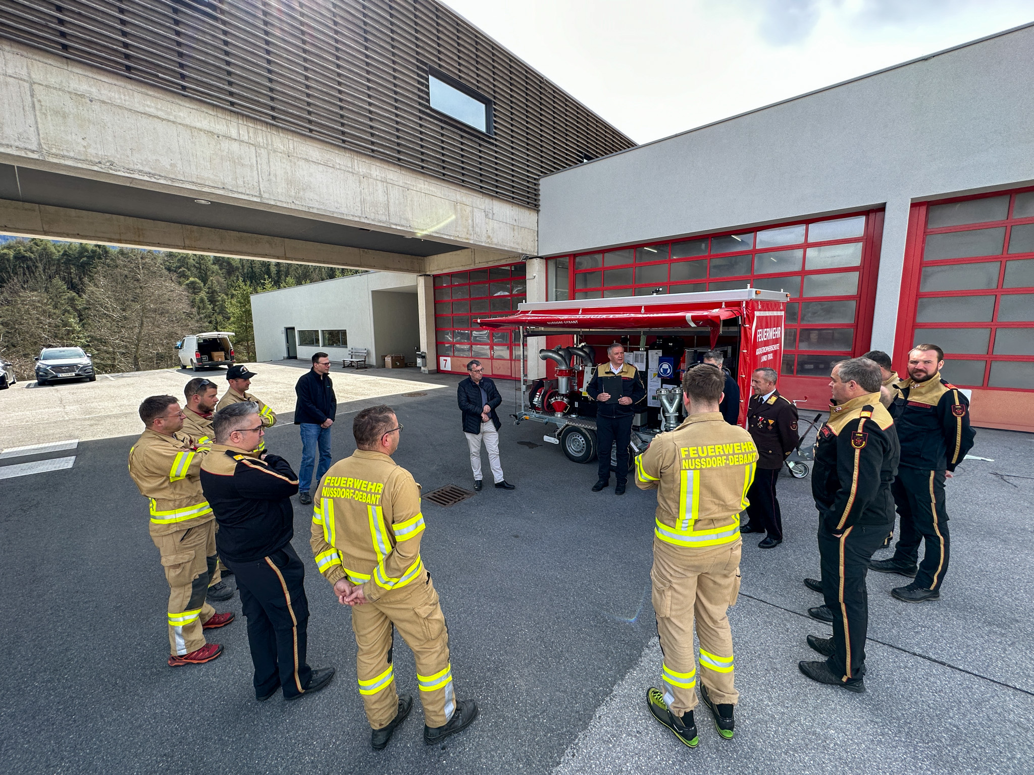 Im Zuge einer kleinen Feier wurde am 17. März 2023 vom Vertreter des Landes Tirol - Vorstand der Abteilung Einsatzorganisation Mag. Gernot Reister -, Landes-Feuerwehrkommandant Jakob Unterladstätter und Landes-Feuerwehrinspektor DI Alfons Gruber eine Hochleistungs-Großpumpe an die Feuerwehr Nußdorf-Debant übergeben.
