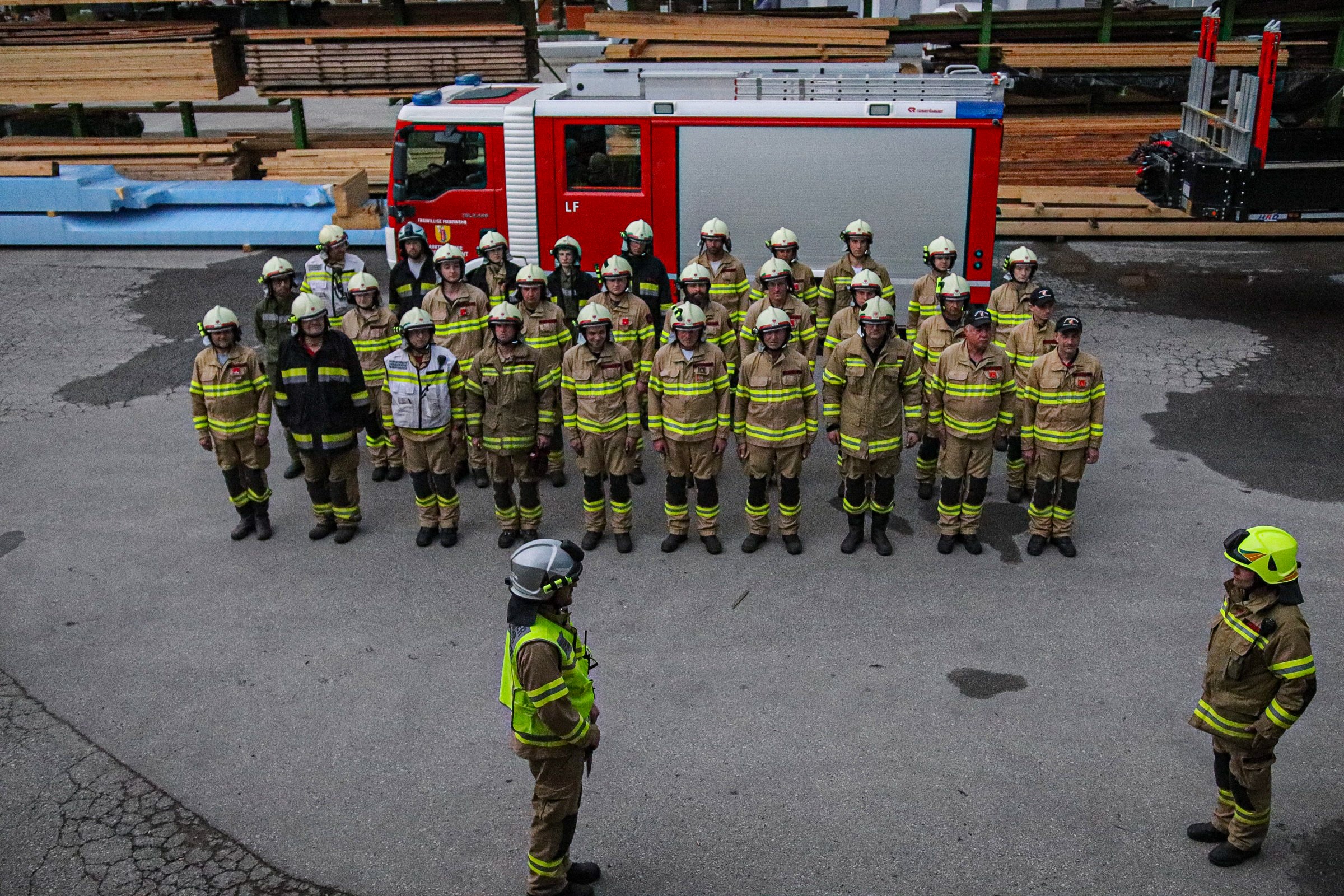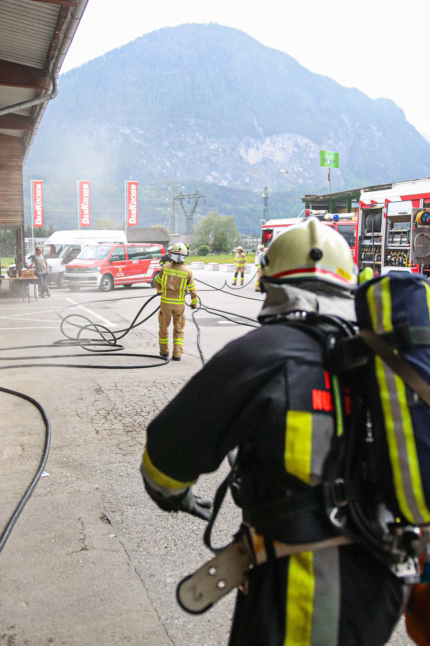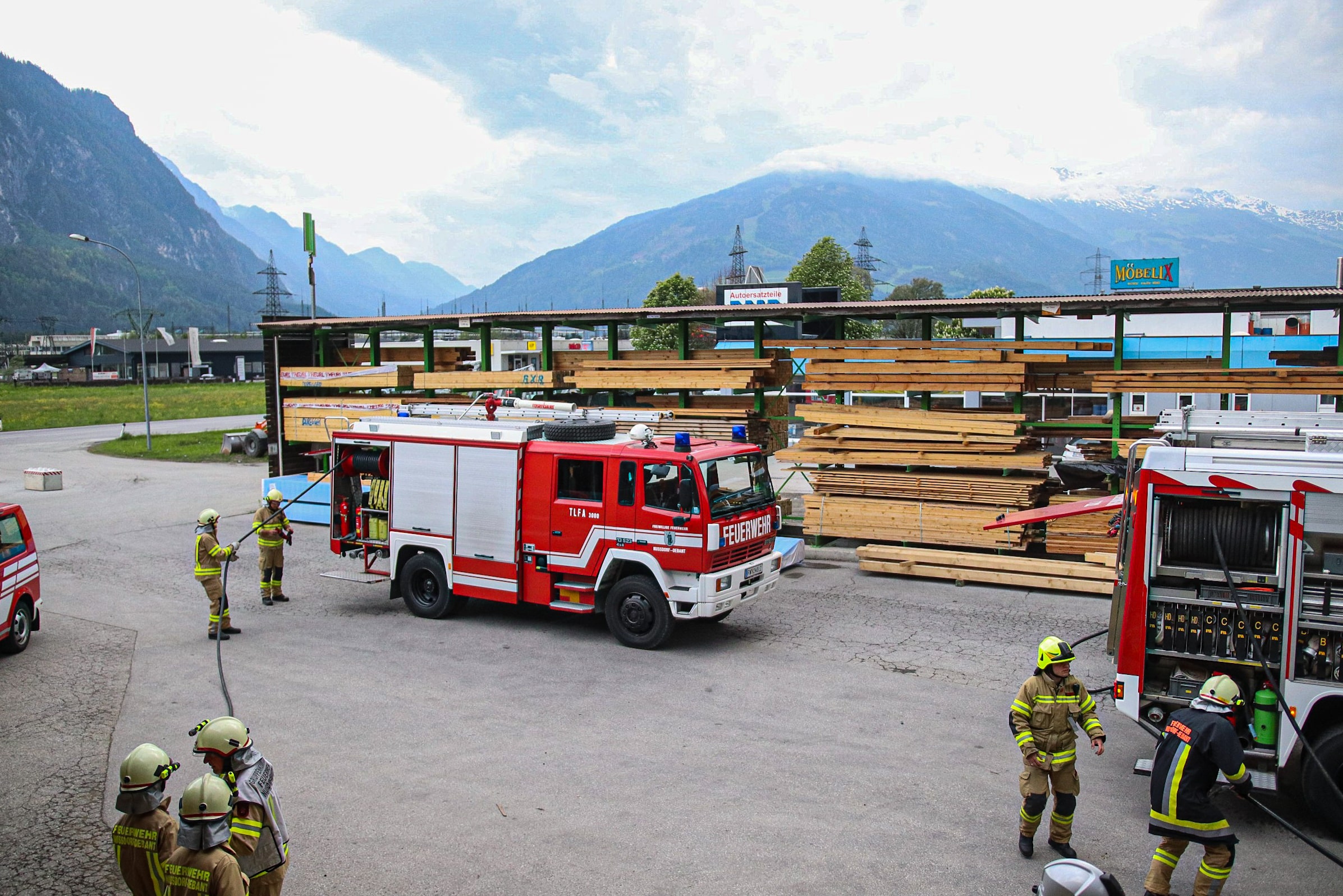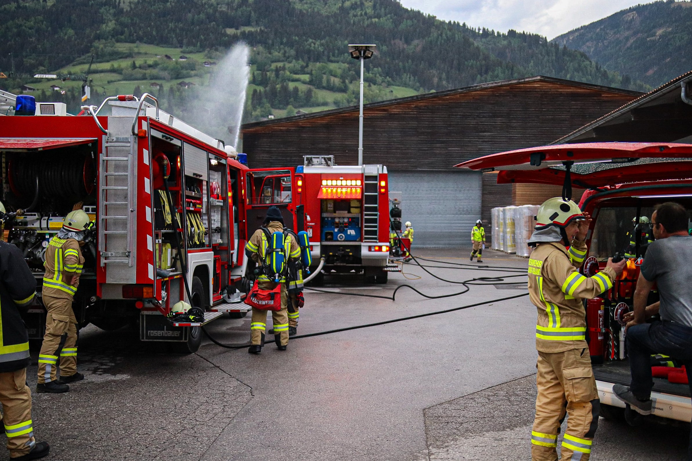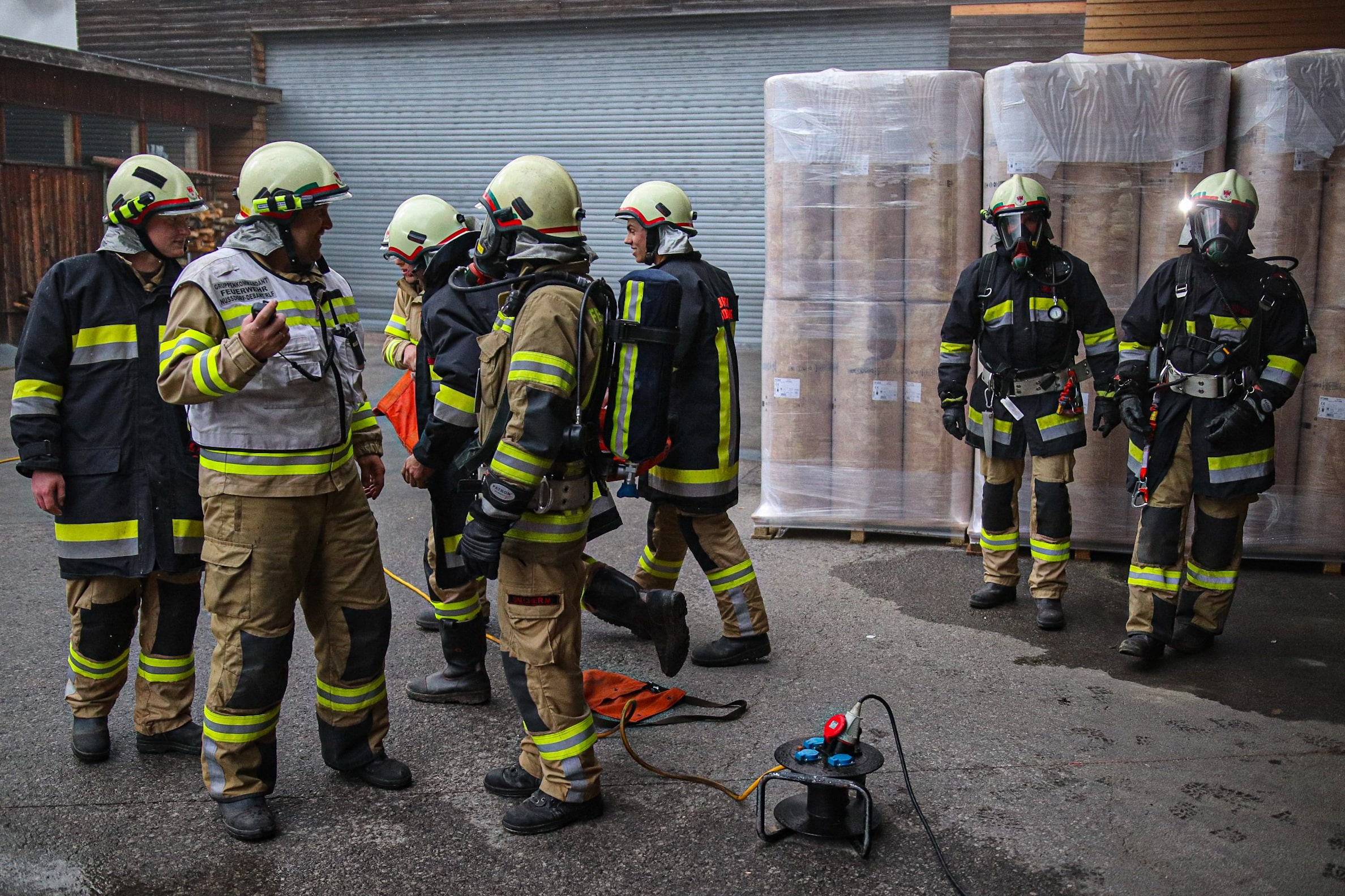 Übungsannahme war ein Brand bei der Firma Duregger mit vermissten bzw. eingeklemmten Personen.
