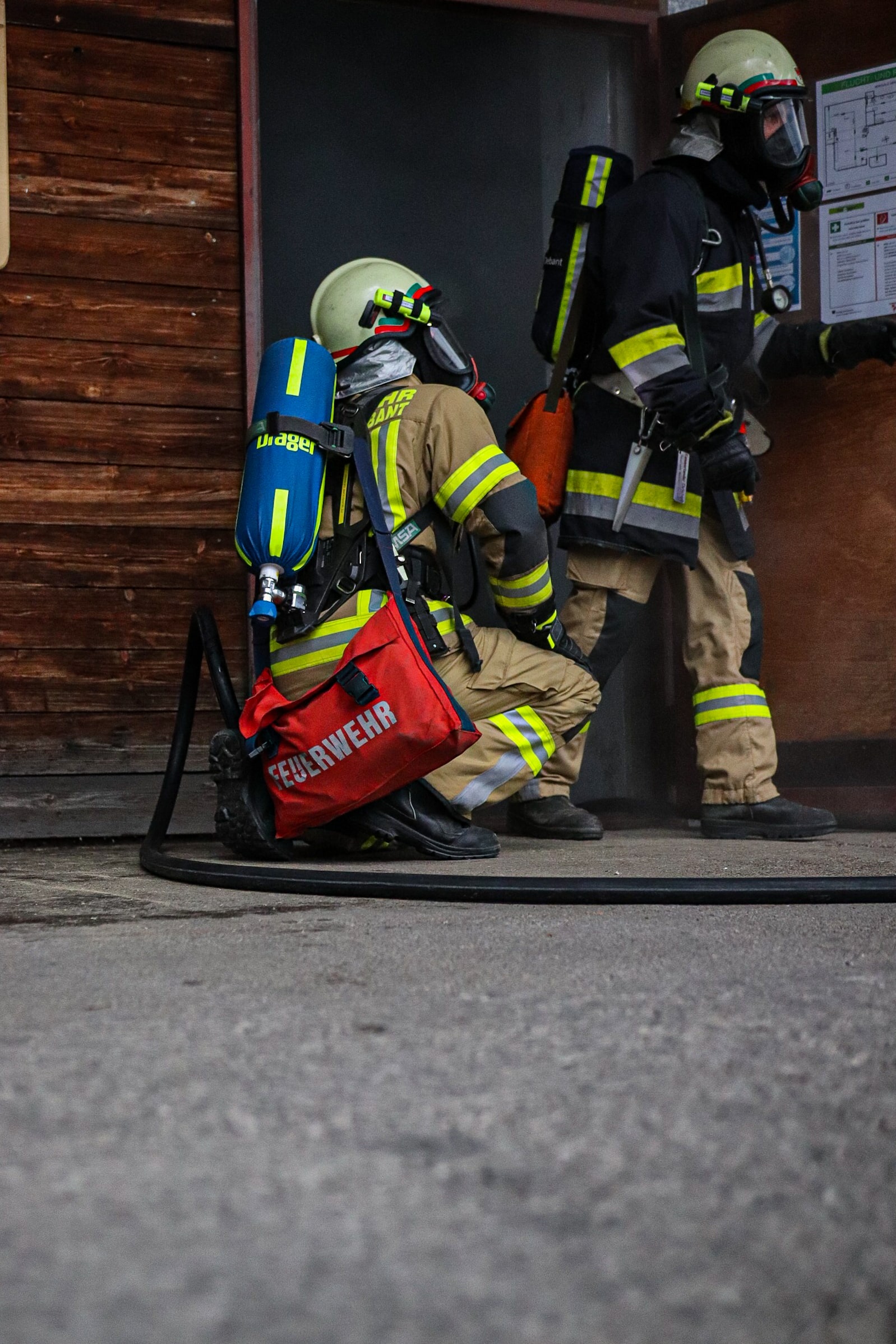 Als wir am Übungs-/Einsatzort eintrafen, wurden von der Einsatzleitung sofort zwei Atemschutztrupps in das verrauchte Gebäude geschickt, um die Lage zu erkunden, die vermissten Person zu befreien und zu retten, weitere Gefahren einzugrenzen und mit dem Löschangriff zu beginnen. Die Kameraden vom LF haben parallel dazu eine Zubringerleitung vom Hydrant bei der Firma Inmann aufgebaut.