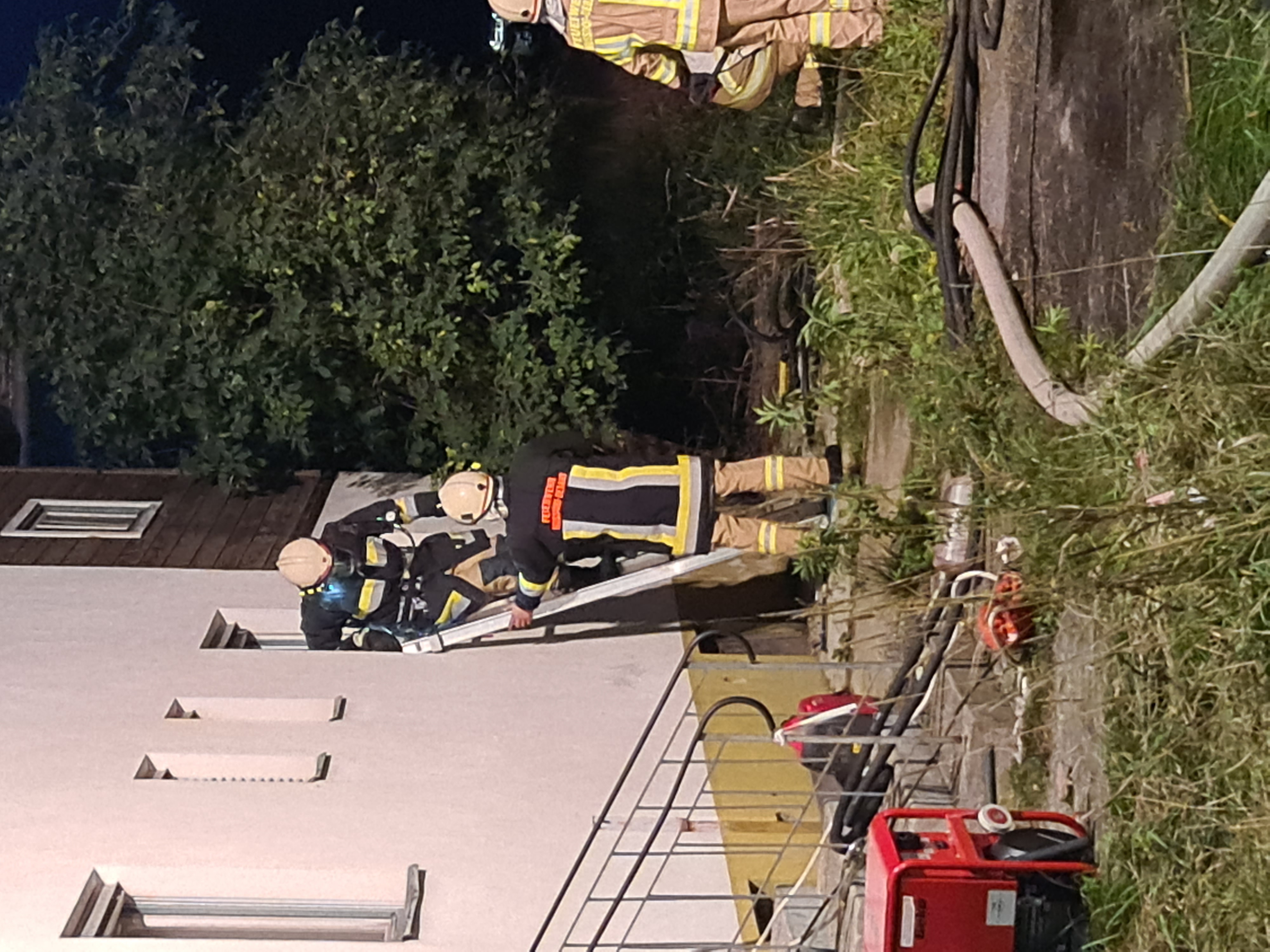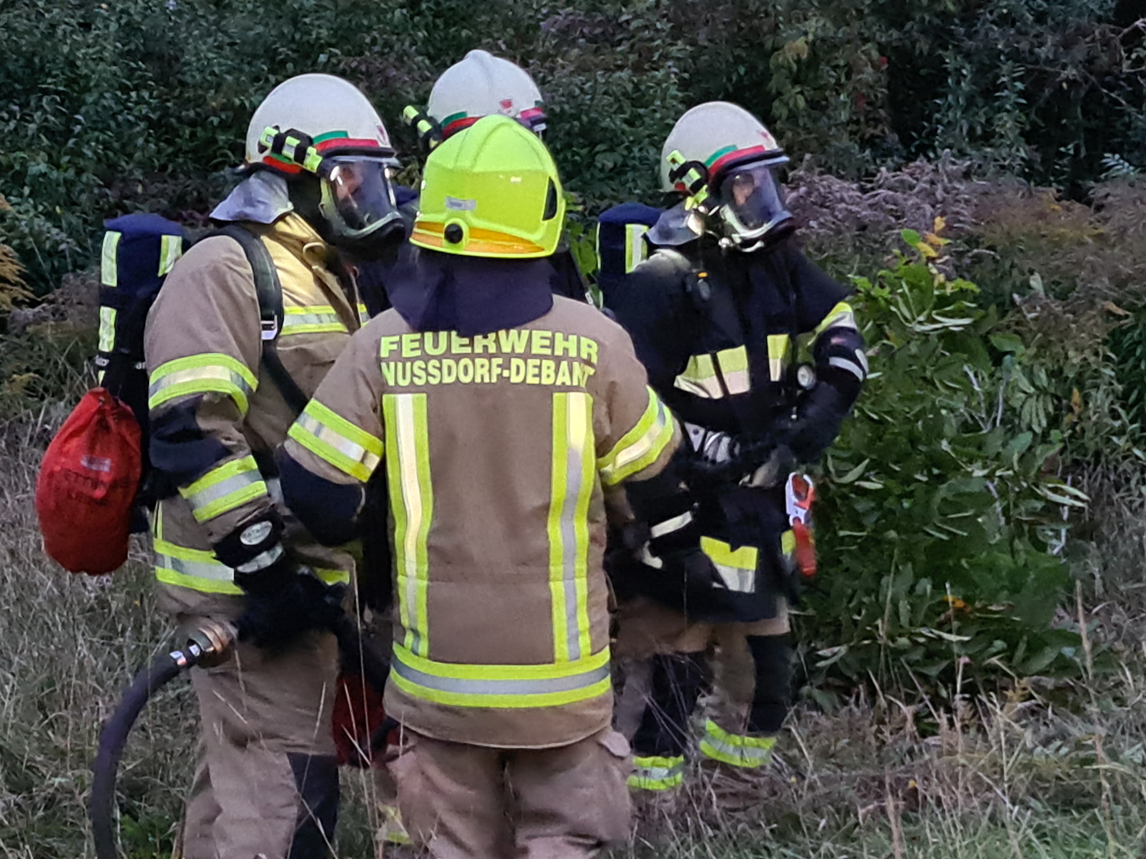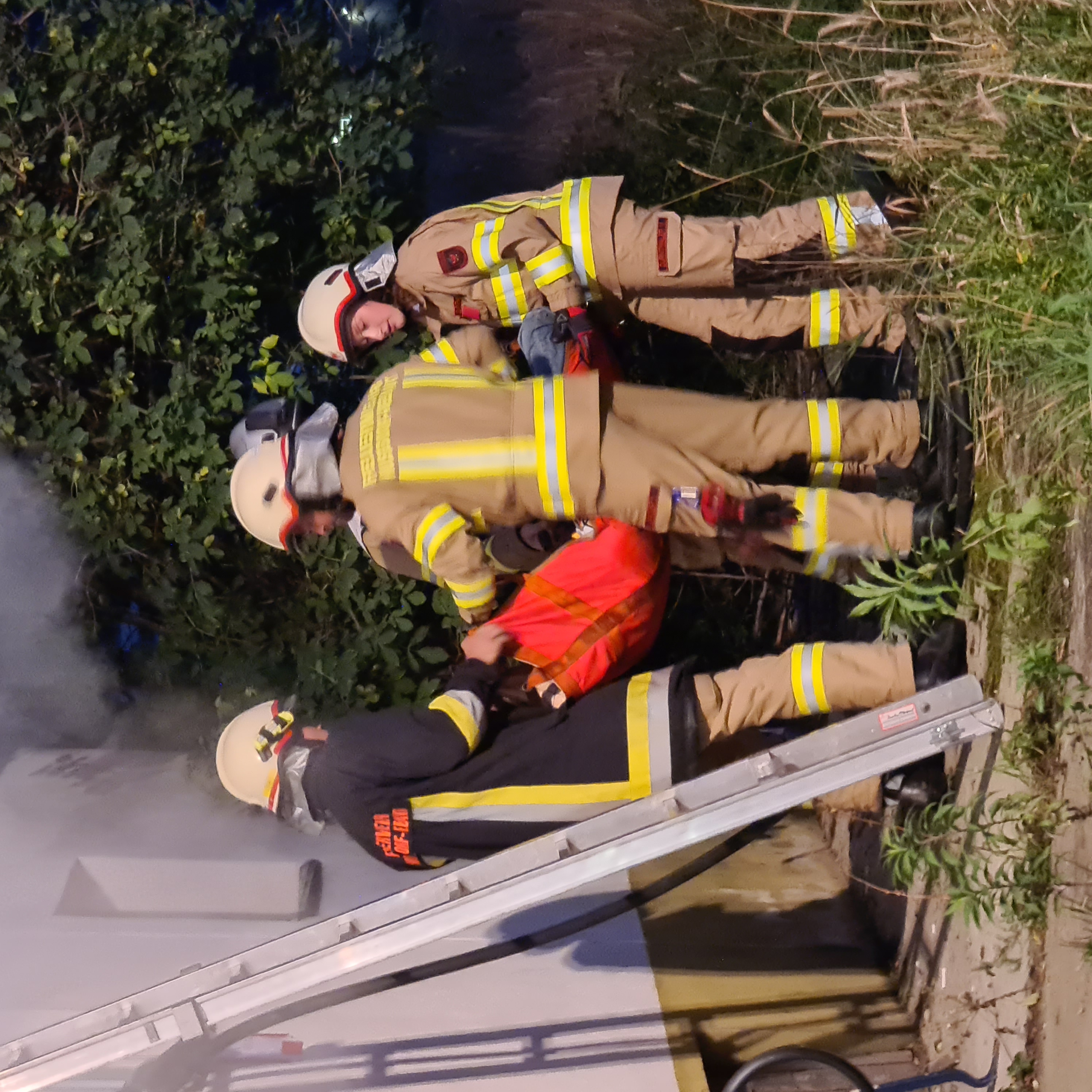 Als wir am Übungs-/Einsatzort eintrafen, wurden von der Einsatzleitung sofort drei Atemschutztrupps vom TLF, RLF, und LF in das verrauchte Gebäude geschickt, um die Lage zu erkunden, die vermissten Person zu retten, weitere Gefahren einzugrenzen und mit dem Löschangriff zu beginnen. Dazu wurde ebenso eine Atemschutzsammelstelle errichtet. Die Kameraden vom KLF haben parallel dazu eine Zubringerleitung vom Hydranten von einem der umliegenden Hydranten aufgebaut.