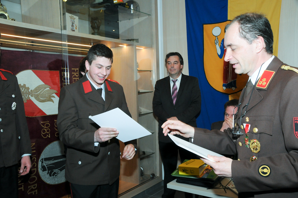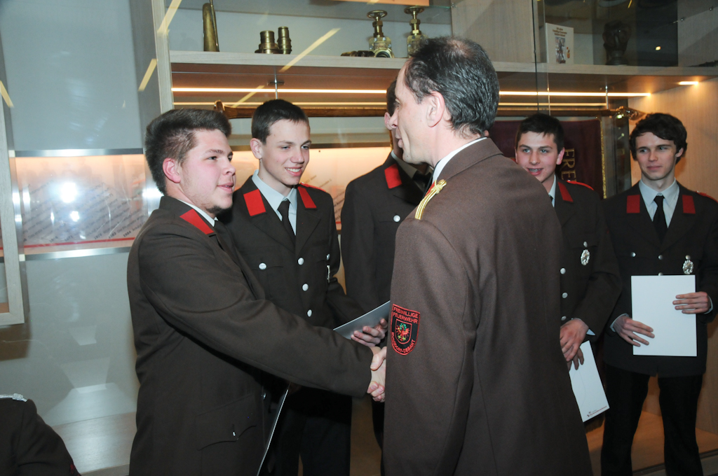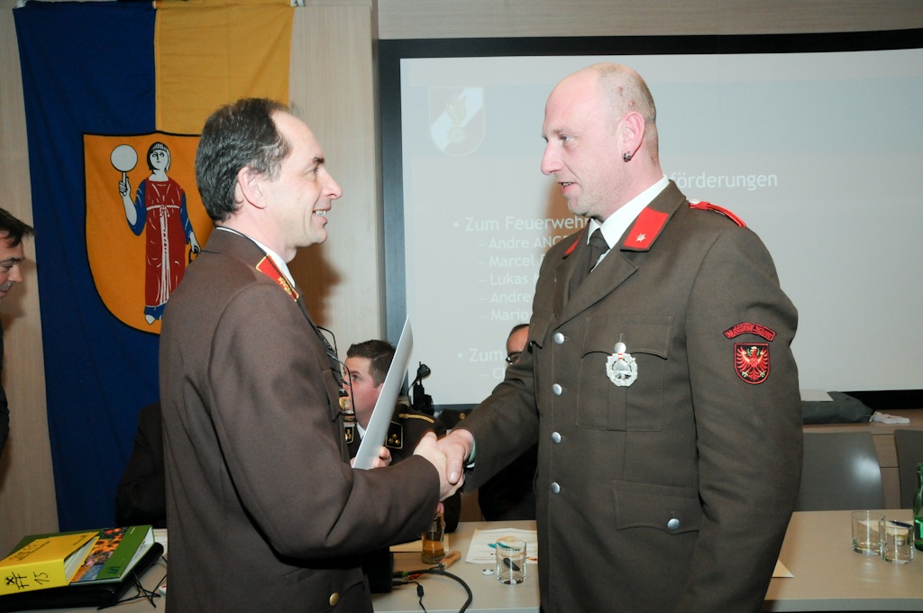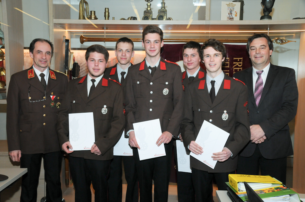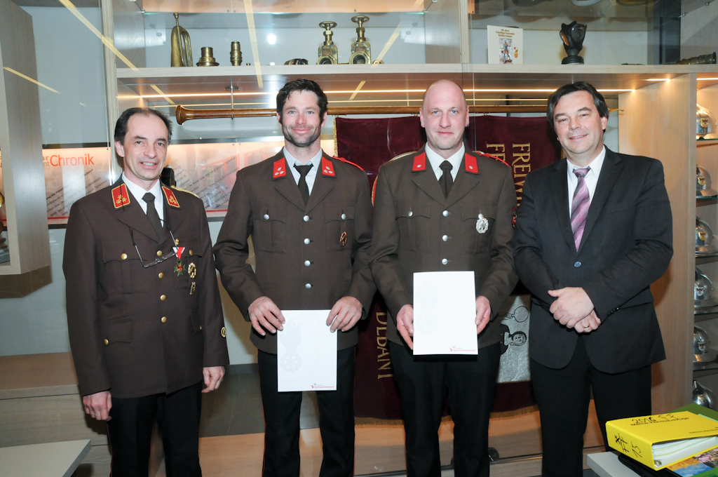 5 Jungmänner (Andre Angermann, Marcel Birschl, Lukas Mitterdorfer, Andre Rainer und Mario Stotter) haben die Angelobungsformel nachgesprochen und konnten somit zum Feuerwehrmann befördert werden. Christian Groder ist nun Oberfeuerwehrmann und Manuel Holzer und Christoph Kammerlander Hauptfeuerwehrmann. Zum Löschmeister befördert wurden Reinhold Ebner, Thomas Lenzhofer und Thomas Pfurner.