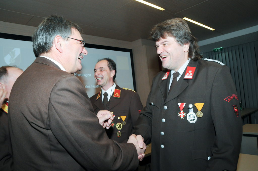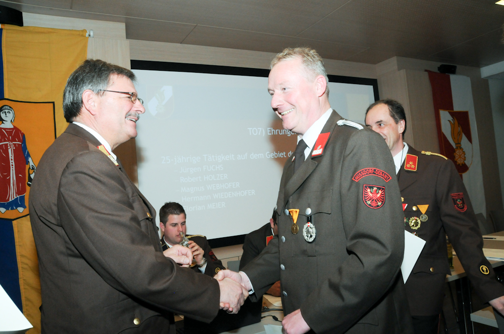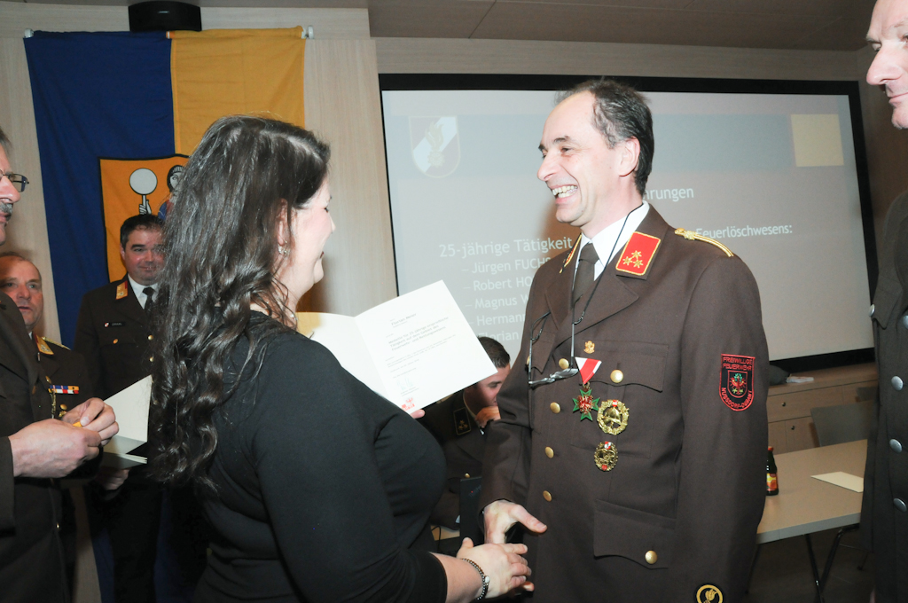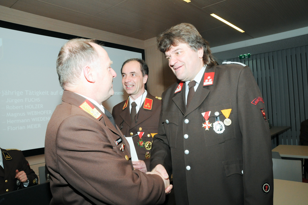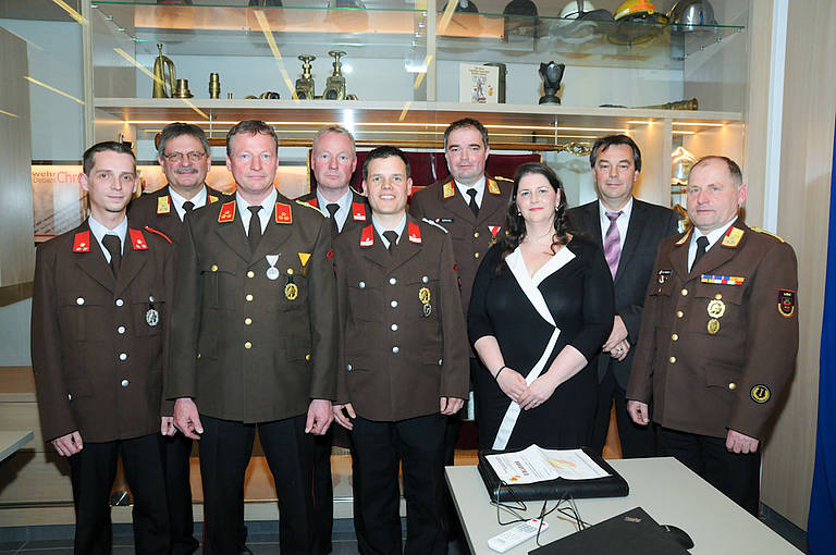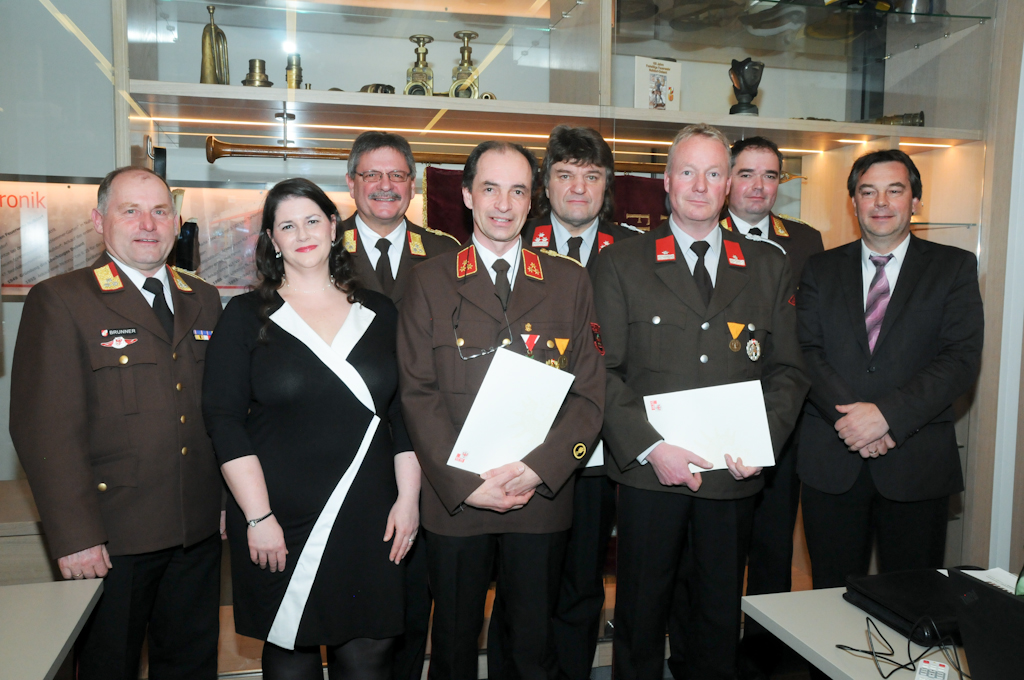 Die Ehrung für 25-jährige Tätigkeit auf dem Gebiete des Feuerlöschwesens erhielten Jürgen Fuchs, Robert Holzer, Magnus Webhofer, Hermann Wiedenhofer und Ing. Florian Meier.