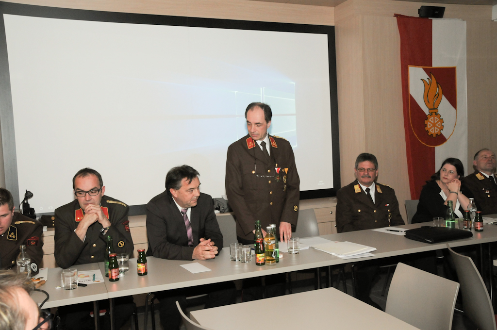 Kommandant HBI Ing. Meier Florian konnte folgende Ehrengäste persönlich begrüßen: Bezirkshauptfrau Dr. Olga Reisner, Bürgermeister Ing. Andreas Pfurner mit Gemeinderat, Pfarrer Bruno Decristoforo, Bezirksfeuerwehrkommandant Herbert Oberhauser, Bezirksfeuerwehrinspektor Franz Brunner, Abschnittsfeuerwehrkommandant Harald Draxl, Ehrenmitglied Norbert Brugger und insgesamt 62 Mann der Wehr. Für die beiden Verstorbenen Kameraden Ernst Jans und Balthasar Walchensteiner wurde eine Trauerminute abgehalten.