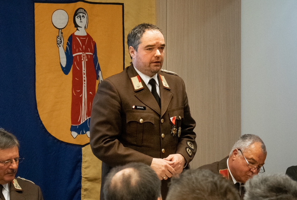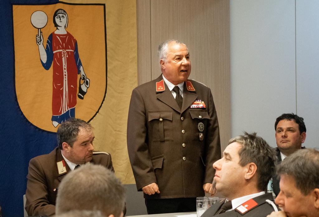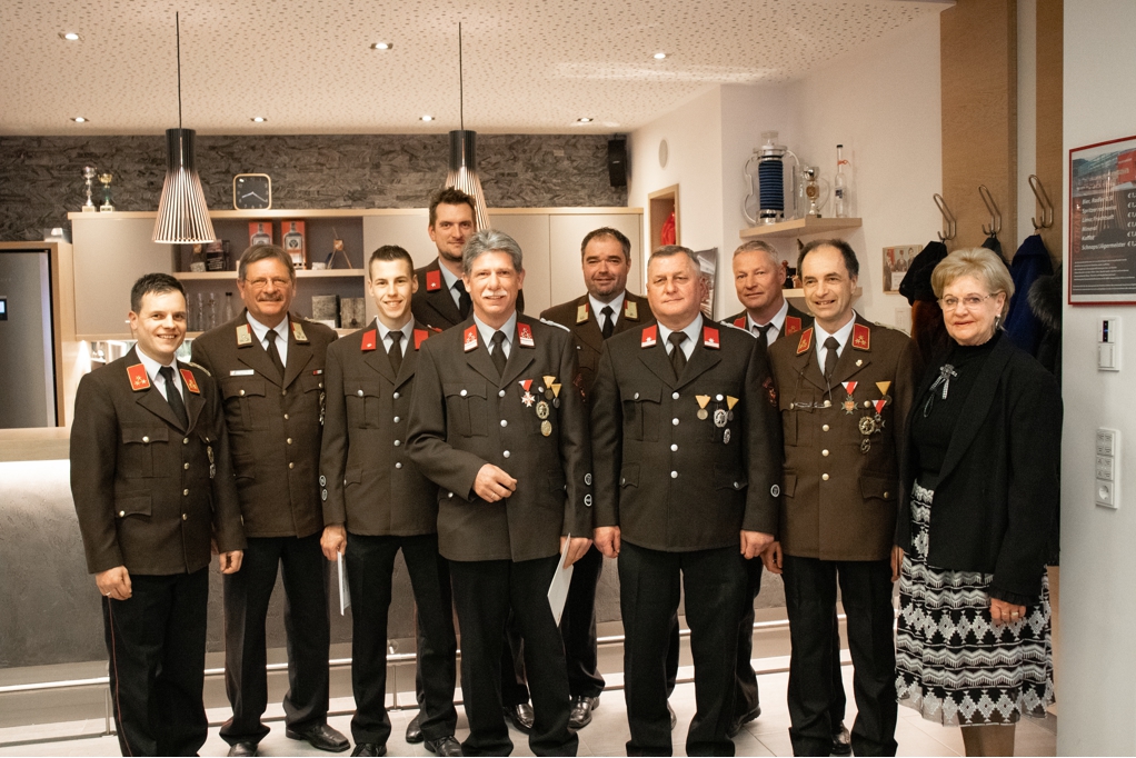Zur diesjährigen Jahreshauptversammlung konnte Kommandant Reiter Lukas neben den Kameraden unter anderem Bürgermeisterstellvertreterin Traudl Oberbicheler, Bezirksfeuerwehrkommandant Herbert Oberhauser, Abschnittskommandant Harald Draxl, Pfarrkoordinator Thomas Happacher und Alt-Kommandant, Ehrenmitglied und Chronist Norbert Brugger begrüßen.