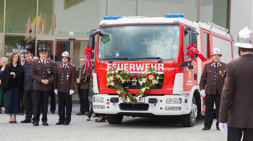 Am Samstag den 03.05.2014 war es soweit. Das neue Löschfahrzeug der Feuerwehr Nußdorf-Debant wurde im feierlichen Rahmen eingeweiht. Kommandant Florian Meier konnte unter anderem LA Martin Mayerl, LA Josef Schett, Bürgermeister Andreas Pfurner, Bezirksfeuerwehrinspektor Franz Brunner sowie Abschnittskommandant Harald Draxl begrüßen. Um 16.30 Uhr trafen die Fahnen- und Feuerwehrabordnungen beim Feuerwehrgerätehaus Debant ein. Begleitet von der Marktmusikkapelle marschierten die Abordnungen und die heimische Wehr zum Marktgemeindeamt.