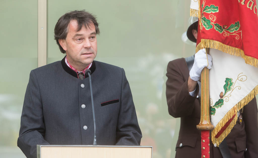 Hier zelebrierte Pater Maximilian vom Lienzer Franziskanerorden die Feldmesse mit anschließender Segnung des neuen Löschfahrzeuges. Als Patin des neuen Löschfahrzeuges fungierte Nina Pfurner, die Gattin von Bürgermeister Andreas Pfurner.