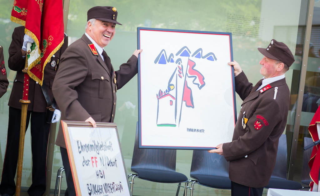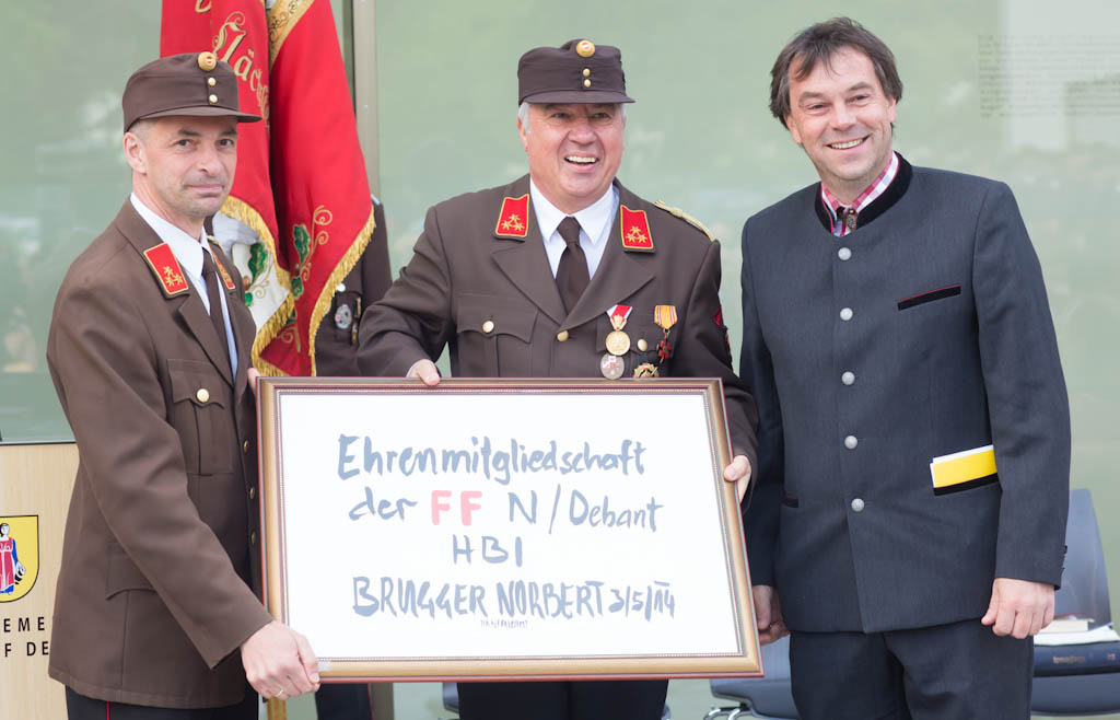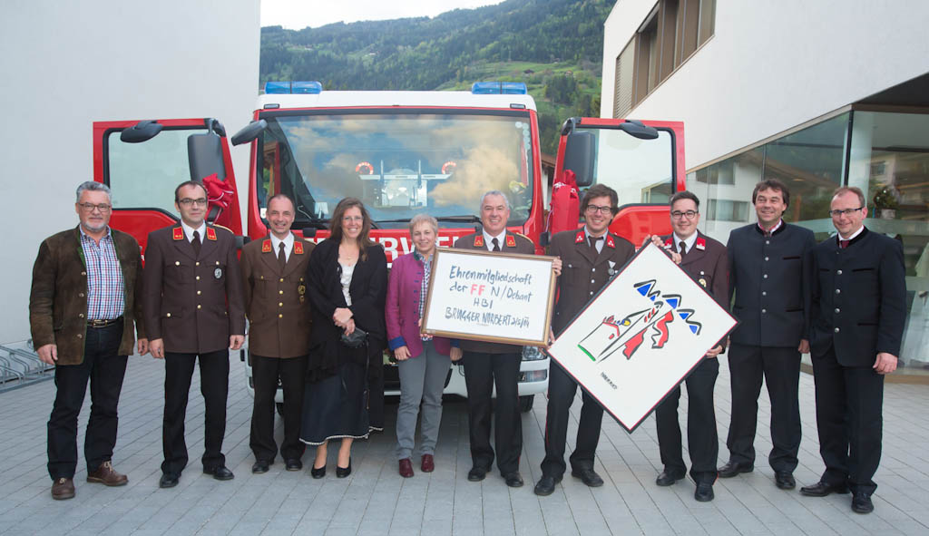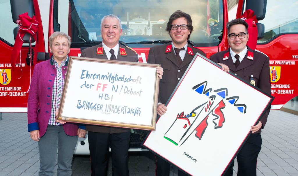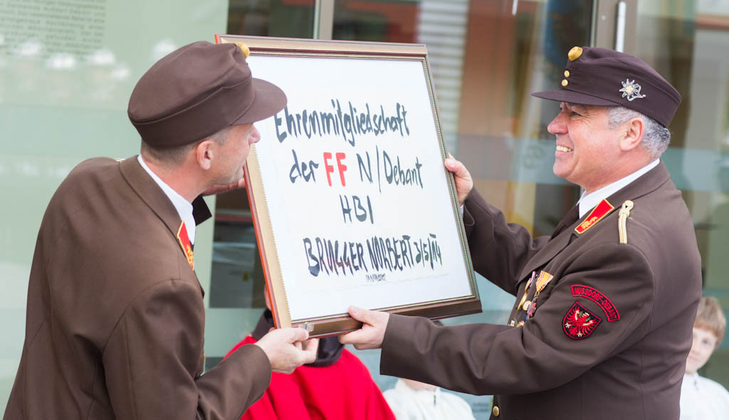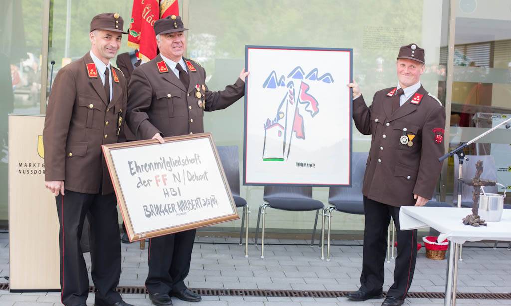 Eine besondere Ehre gebührte an diesem Tag aber Alt-Kommandant Norbert Brugger. Er wurde nach einstimmigem Beschluss des Feuerwehrausschusses aus dem Jahre 2012 zum Ehrenmitglied der Freiwilligen Feuerwehr Nußdorf-Debant ernannt. Als Geschenk wurde ihm die Ehrenmitgliedschaftsurkunde sowie ein Bild des Osttiroler Künstlers Hans Salcher überreicht.