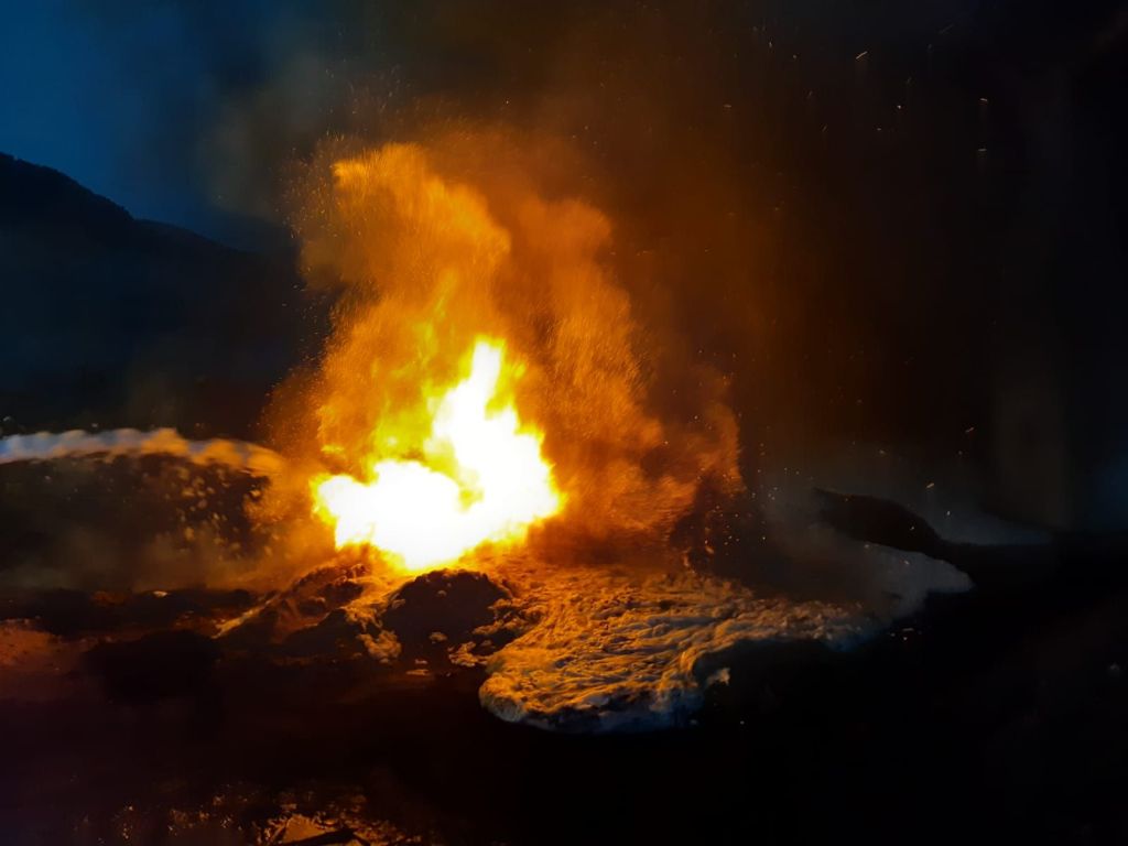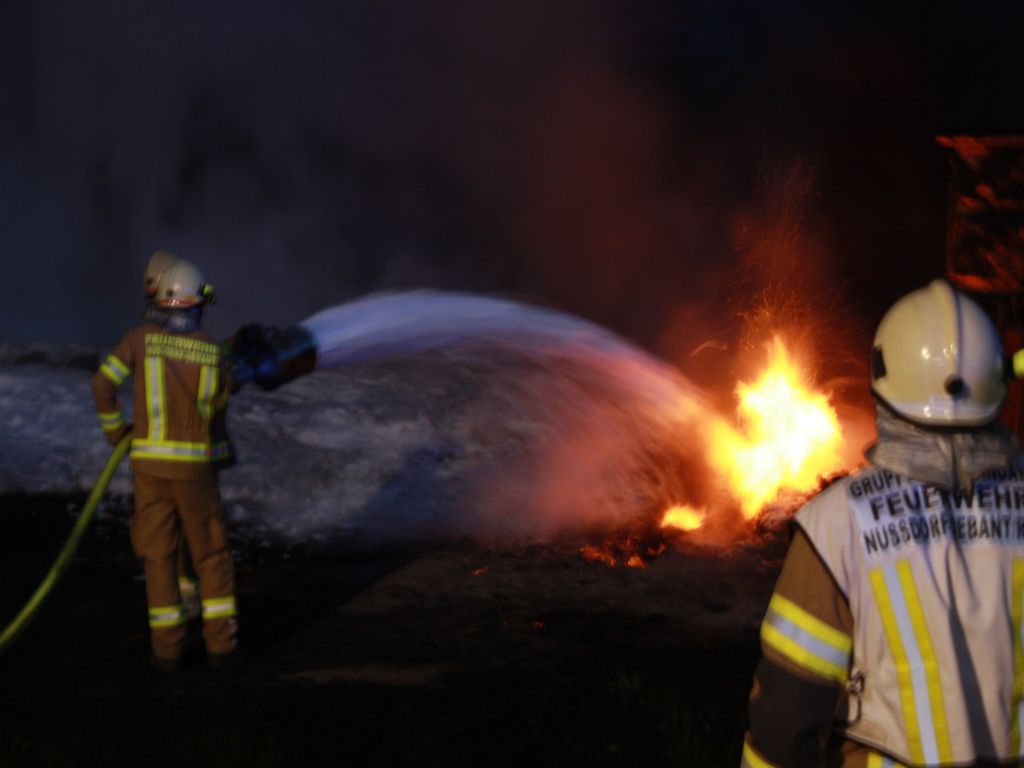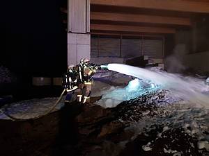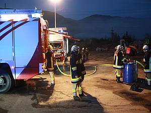 Nach erkunden der Lage durch das Kommando wurde der Sammelruf ausgelöst. Unser TLF (Tanklöschfahrzeug) hatte die Aufgabe, die komplette Asche mit Schaum zu überdecken, damit kein Funkenflug entstehen kann. Das RLF (Rüstlöschfahrzeug) pendelte zwischen Hydrant Draustraße und Einsatzort und versorgte das TLF mit Wasser. Weiters hat sich der Atemschutztrupp ausgerüstet, damit dieser vor Ort gesichert den Schaumteppich auftragen kann. Das nachkommende LF (Löschfahrzeug) hat aufgrund der eingetretenen Dunkelheit das Powermoon aufgebaut und somit konnte die Mannschaft bei fast tagheller Beleuchtung sehr gut den Einsatz abarbeiten.