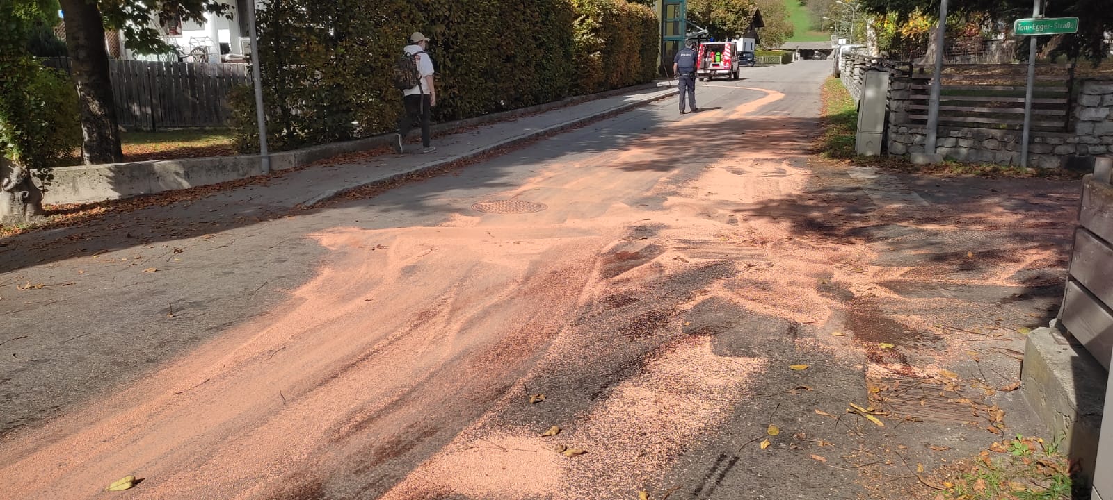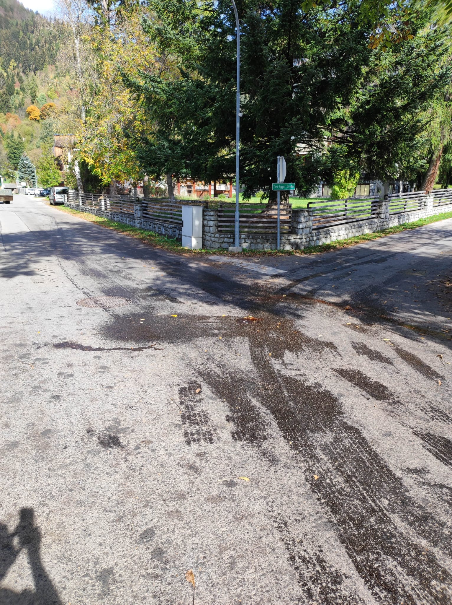 Am 11.10.2022 wurden wir über eine Ölspur informiert, die sich vom Mühlanger bis zum Ende der Toni-Egger-Straße zog.