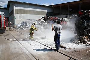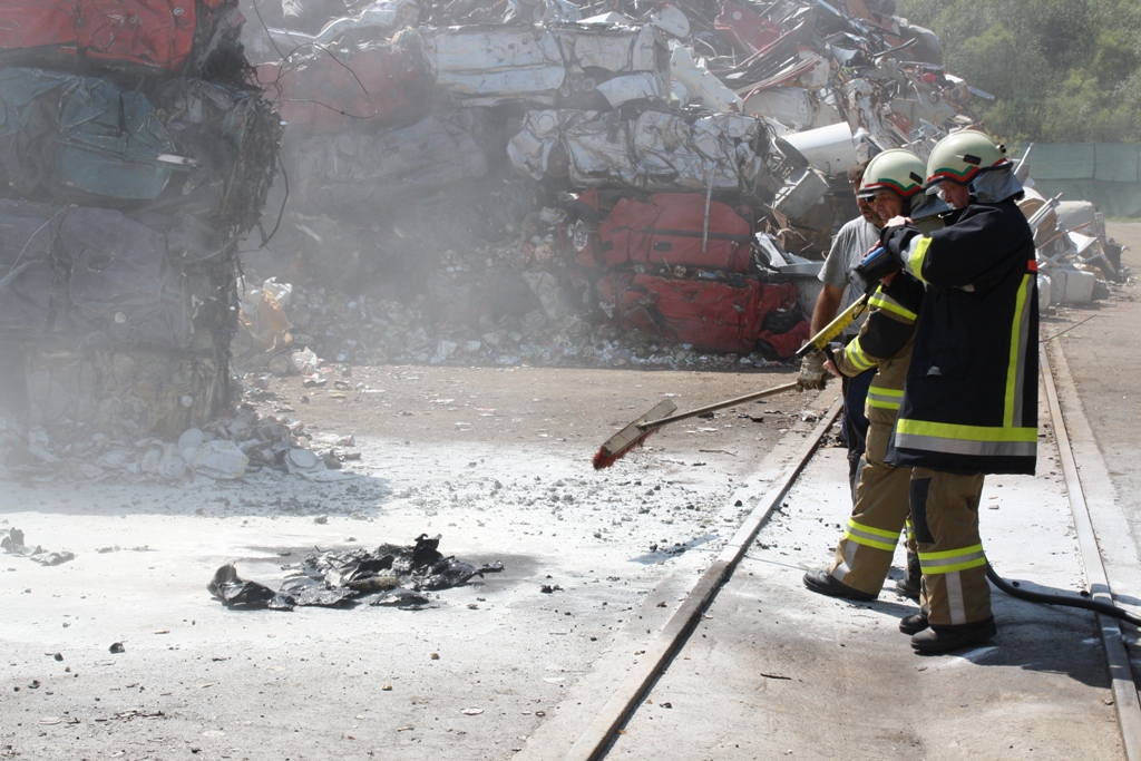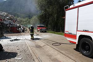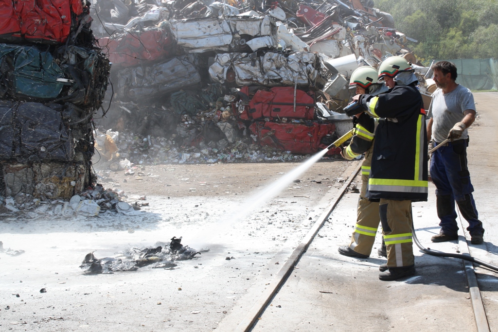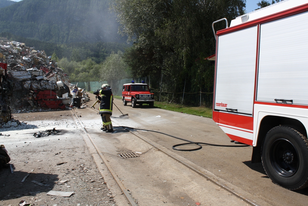 Am 16.08.2018 um 11:43 Uhr wurde unsere Wehr mittels Pager und SMS zu einer starken Rauchentwicklung im Bereich des Abfallwirtschaftszentrum Rossbacher alarmiert. Es wurde vermutet, das der daneben vorbeiführende Bahndamm in Brand geraten war. Nach Eintreffen am Einsatzort, konnte jedoch kein Brand bzw. Rauchentwicklung festgestellt werden. So begaben sich unsere Kameraden auf die Suche und konnten nach kurzer Zeit den Brandherd ausfindig machen. Im Bereich des Schrottplatzes der Firma Rossbacher war ein kleiner Brand ausgebrochen, welcher jedoch von Mitarbeitern bereits gelöscht wurde. Unsere Kameraden übernahmen in der Folge die Nachlöscharbeiten mit unserem Schaummittel F500 und durchsuchten den Schrotthaufen abschliessend noch mittels Wärmebildkamera. Nach rund 1 1/2 Stunden konnte der Einsatz beendet werden und unsere Kameraden rückten wieder in das Gerätehaus ein.