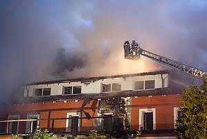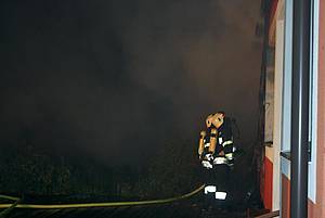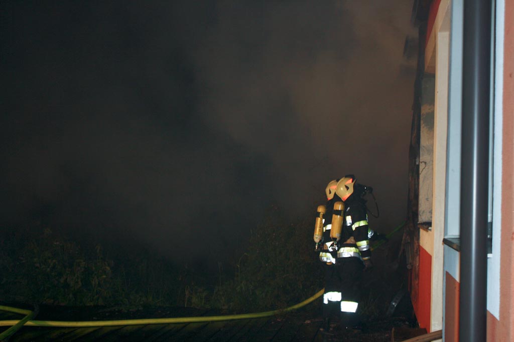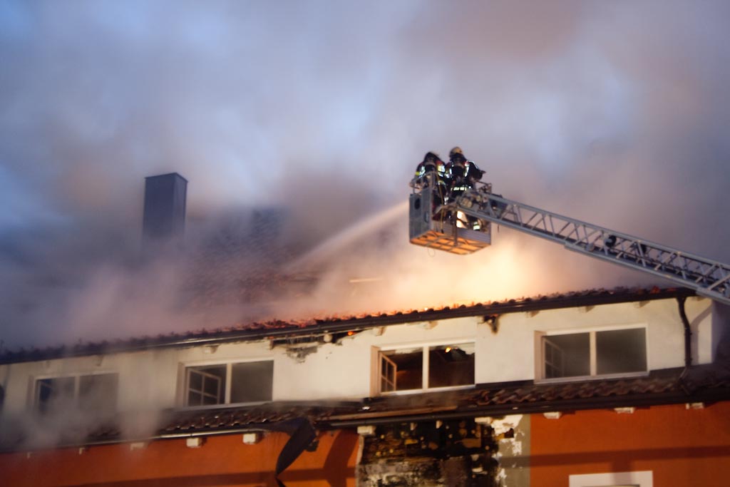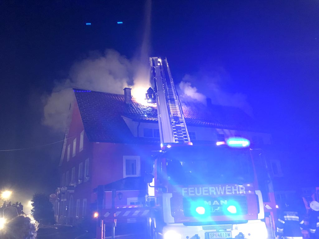 Bei Eintreffen an der Einsatzstelle konnte bereits starke Rauchentwicklung mit Flammenaustritt aus dem gesamten Gebäude festgestellt werden.