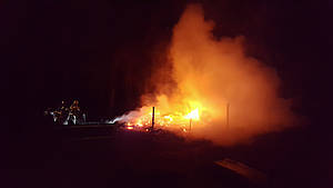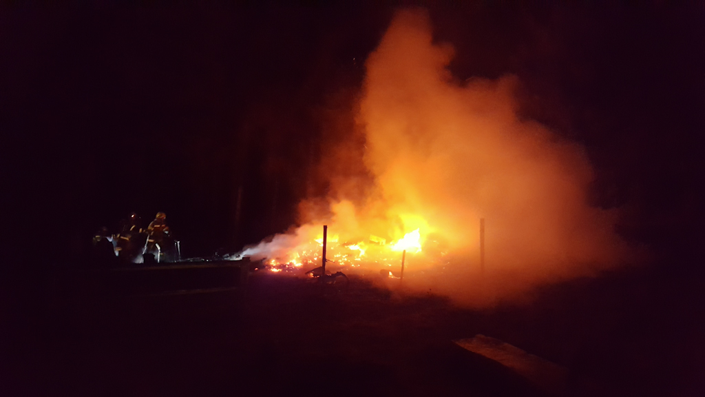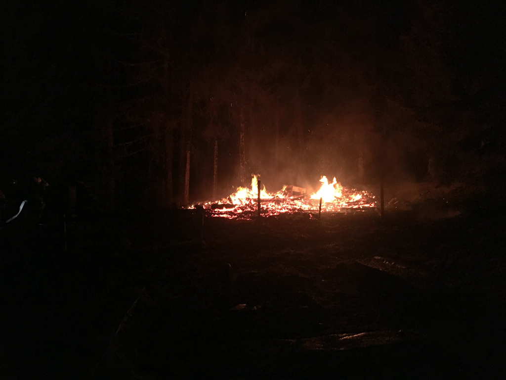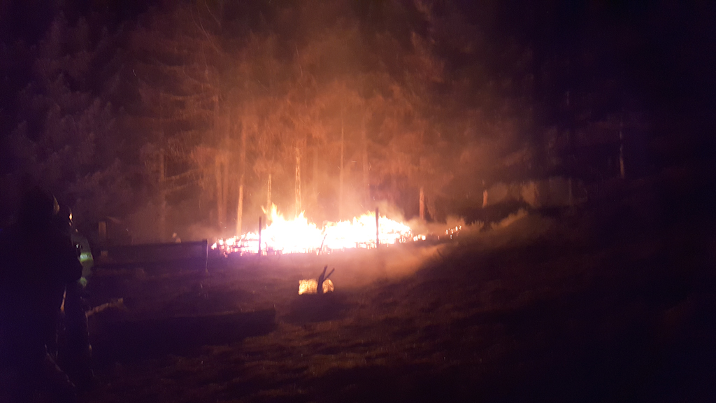Unser Material wurde mit Hilfe eines Traktors über eine Forststraße in Richtung des Einsatzortes geliefert. Die letzten 1000 Meter mussten zu Fuß in teils sehr unwegsamen Gelände gemeistert werden. Wie sich herausstellte stand eine Hütte im Waldbereich im Vollbrand. Nach "Brand aus" rückten die eingesetzten Kräfte um 01.30 Uhr wieder in ihre Gerätehäuser ein.