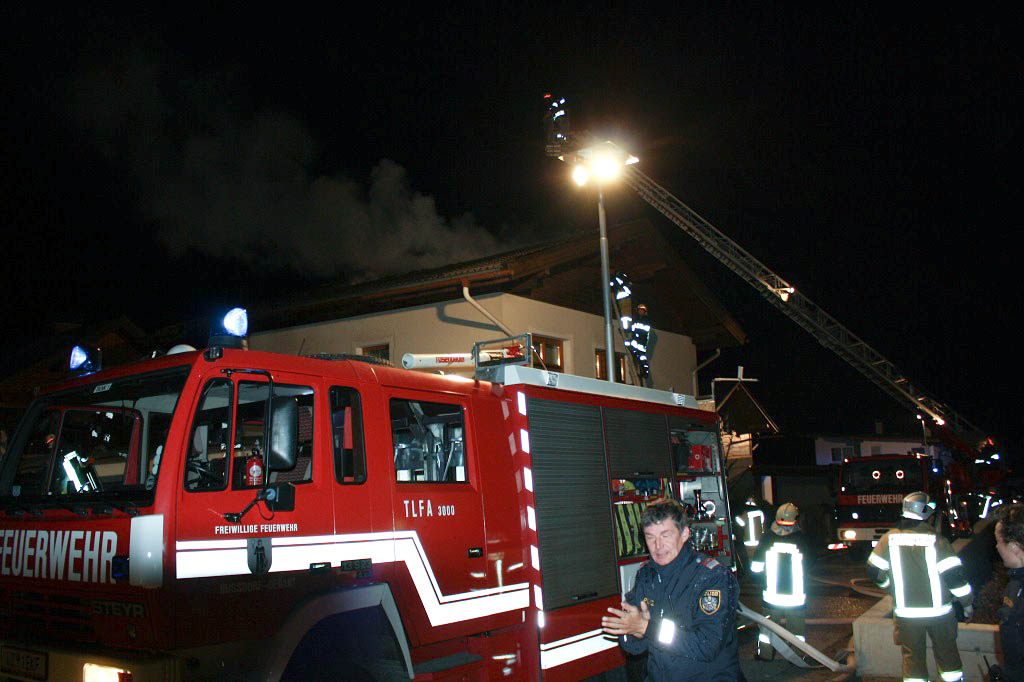 Am Donnerstag, den 24. April 2014 um 04:57 Uhr wurde unsere Feuerwehr mittels Pager und Sirene zu einem Dachstuhlbrand alarmiert. Nach Erkunden der Lage stellte sich heraus, dass der Dachstuhl mit Dachboden in Brand stand. An beiden Seiten des Hauses wurden Leitern aufgestellt und die Atemschutztrupps begannen über eine kleine Fensteröffnung mit der Bekämpfung des Brandes. Mit Hilfe der mitalarmierten Drehleiter Lienz wurde das Feuer mittels Wasserwerfer weitgehend gelöscht. Anschließend wurde der Dachstuhl mit der Wärmebildkamera auf Glutnester untersucht. Zum Löschen der sich noch darunter befindlichen Glutnester mussten mehrere Dachziegel entfernt werden. Um 06.15 Uhr waren die Löscharbeiten vor Ort beendet und wir rückten wieder in das Gerätehaus ein.