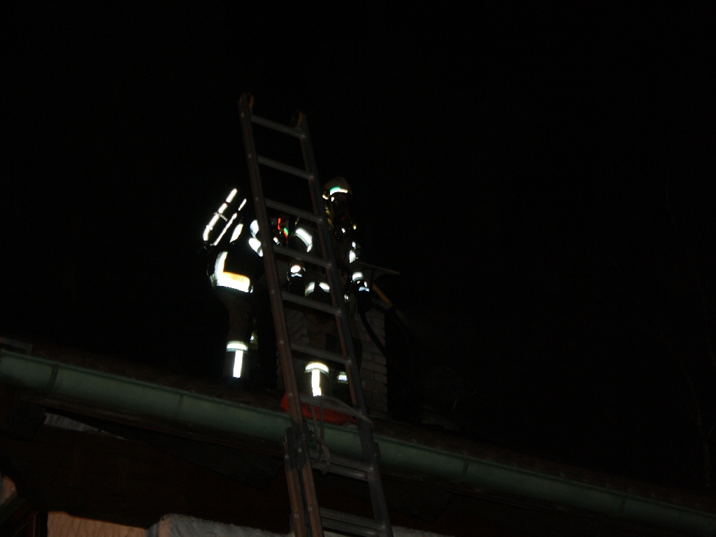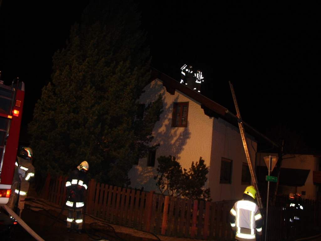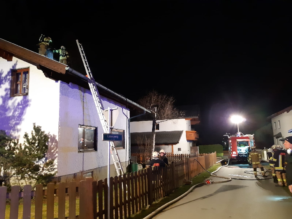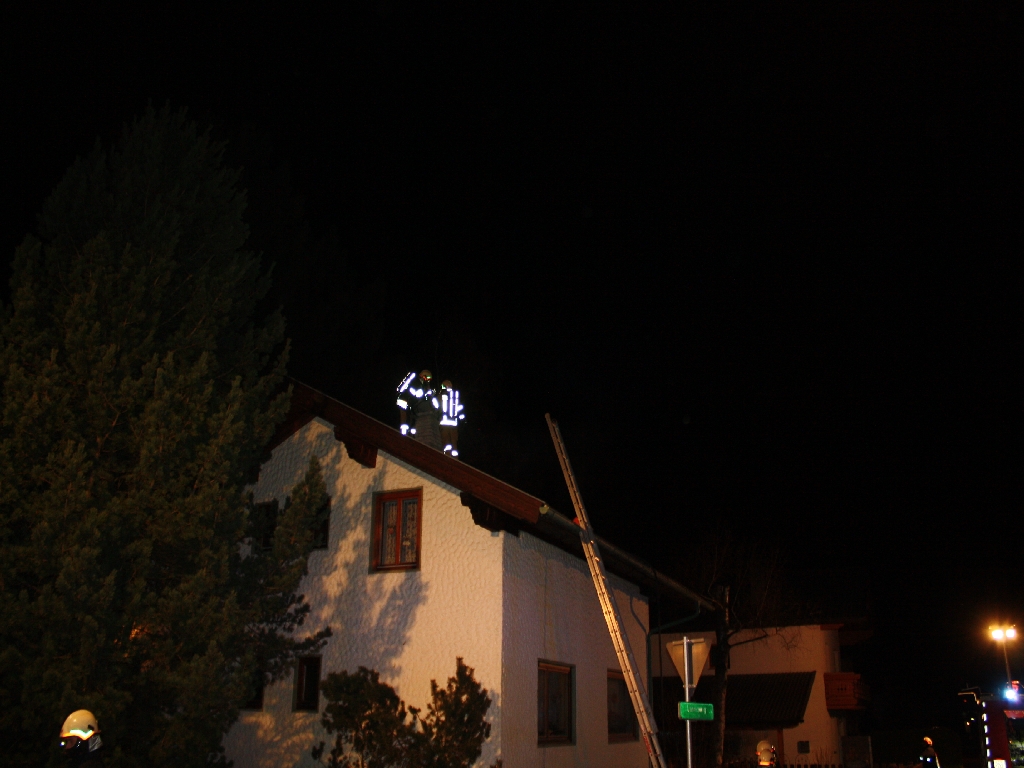 Am Montag den 23. März 2020 um 20:24 Uhr wurden wir mittels Sirene zu einem Kaminbrand gerufen. Am Einsatzort angekommen rückten sofort zwei Atemschutztrupps mittels Feuerlöscher und HD-Rohr zur Brandbekämpfung im Dachboden und auf dem Dach aus. Somit konnte der Kaminbrand kontrolliert abbrennen. Die umstehenden Bäume im Garten hatten zum Glück noch kein Feuer gefangen, trotz des starken Windes.