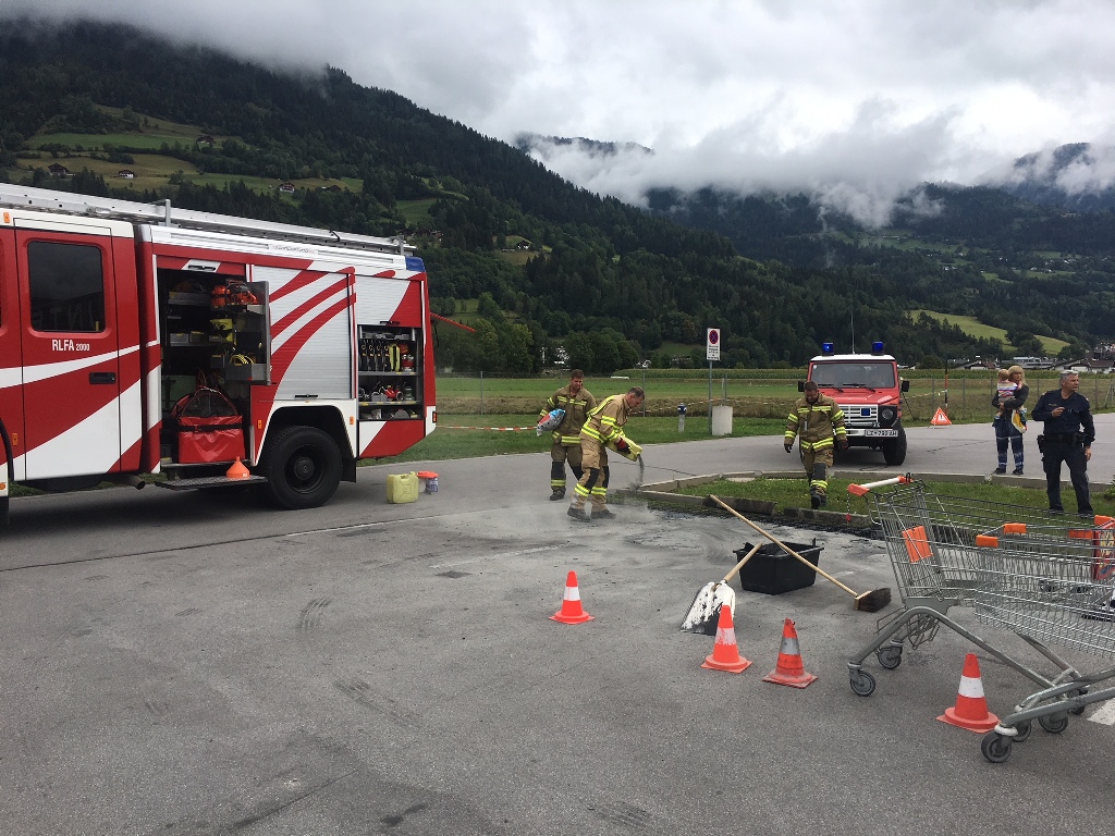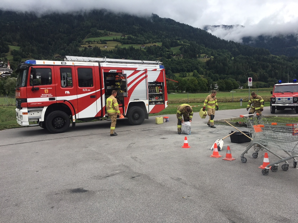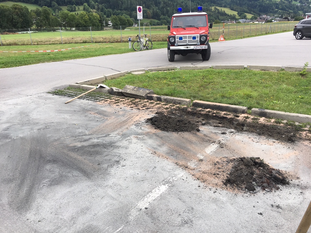 Mittels Kommandoschleife wurde unsere Wehr zu einem Kleineinsatz Ölspur am 25.08.2018 um 11:03 Uhr alarmiert. Im Bereich Interspar geriet ein bisher unbekannter Lenker mit seinem PKW über die Begrenzungssteine hinaus. Dabei dürfte die Ölwanne des Wagens beschädigt worden sein, wodurch eine größere Menge Öl ausgetreten war. Nach der Aufnahme durch die Polizei Lienz begannen unsere Kameraden, das ausgetretene Öl zu binden und mit Hilfe des Bauhofes der Marktgemeinde Nußdorf-Debant das verunreinigte Erdreich zu entfernen. Nach Rund 1 1/2 Stunden konnten unsere Kameraden wieder in das Gerätehaus einrücken.