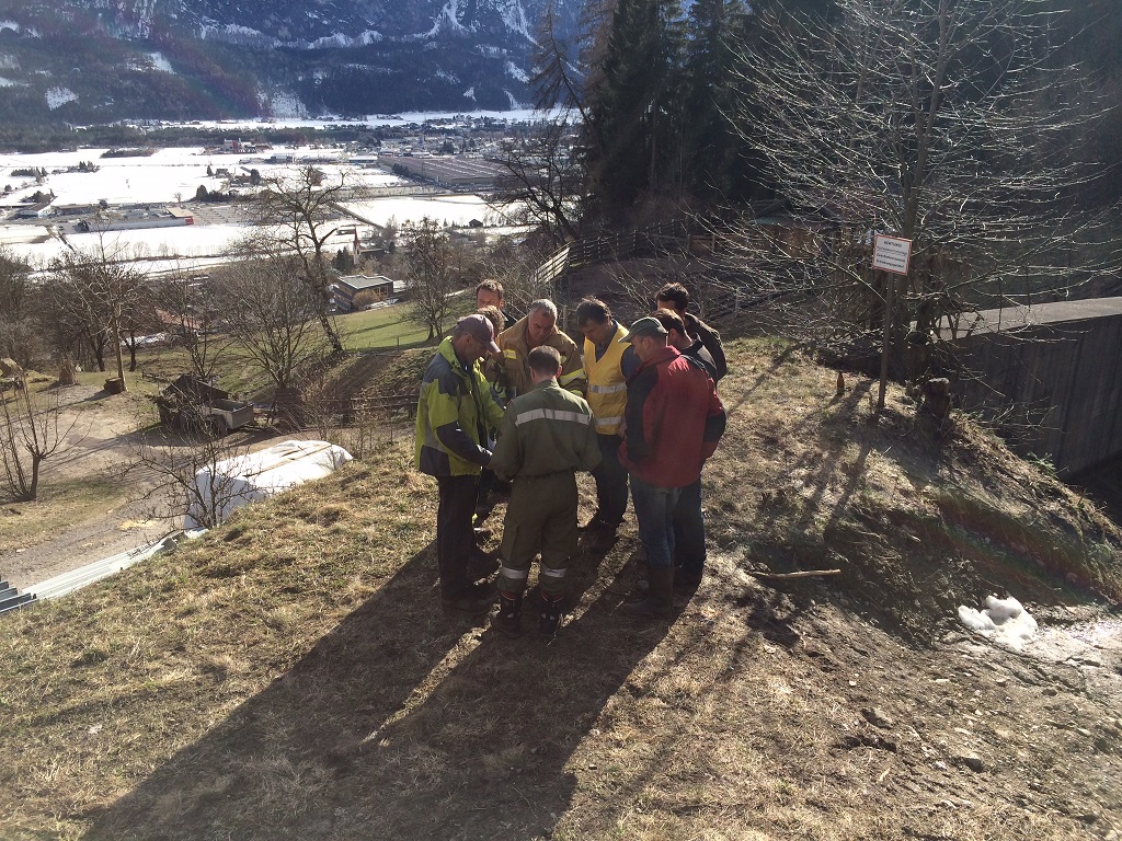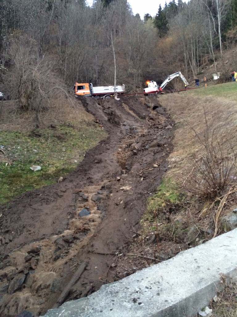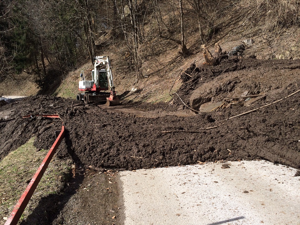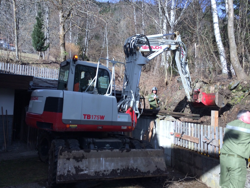 Am Sonntag, den 16. März, um 11.53 Uhr wurde unsere Feuerwehr mittels Pager und Sirene zu einem Murenabgang alarmiert. Beim Eintreffen stellte sich heraus, dass der sogenannte Hackach-Bach beim Zwislinger Bauer die Straße in einer Breite von 15 m ca. 1 m hoch verlegt hatte. Daraufhin wurde die Gemeindestraße aus Sicherheitsgründen gesperrt und zur Beobachtung wurde dann alle 30m ein Posten aufgestellt. Da aber weitere Hangrutschungen erfolgten und der Bach sich immer wieder verklauste, wurden Gärten bzw. der Radweg verschlammt. Deshalb mussten wir mit Schaufel und Bagger für Ordnung sorgen und auch mehrere Bäume mit der Motorsäge beseitigen. Damit die Hofbesitzer wenigstens für kurze Zeit zu ihren Häusern kamen, wurde die Fa. Mangweth für den Abtransport des Schlammes angefordert. Nächster Schwerpunkt war dann der Radweg, wo wir mit Sandsäcken ein Bachbett bauten. Die Straße und der Radweg bleiben bis auf weiteres gesperrt. Nach Rücksprache mit dem Bürgermeister und der Wildbachverbauung konnten wir gegen Abend wieder ins Gerätehaus einrücken.