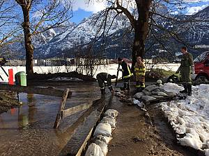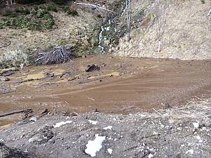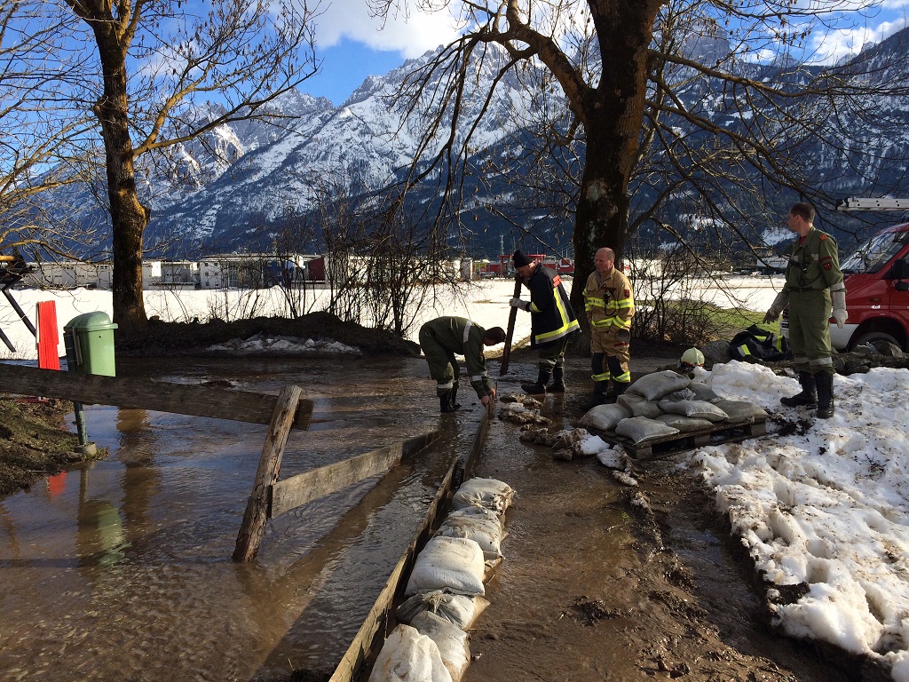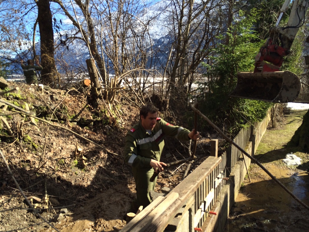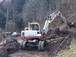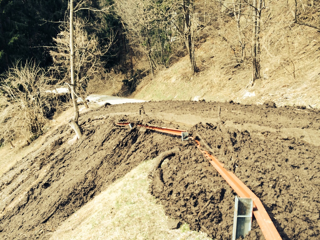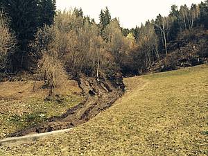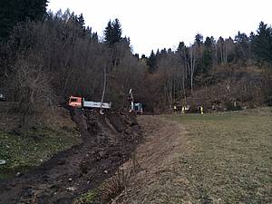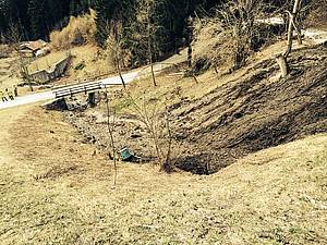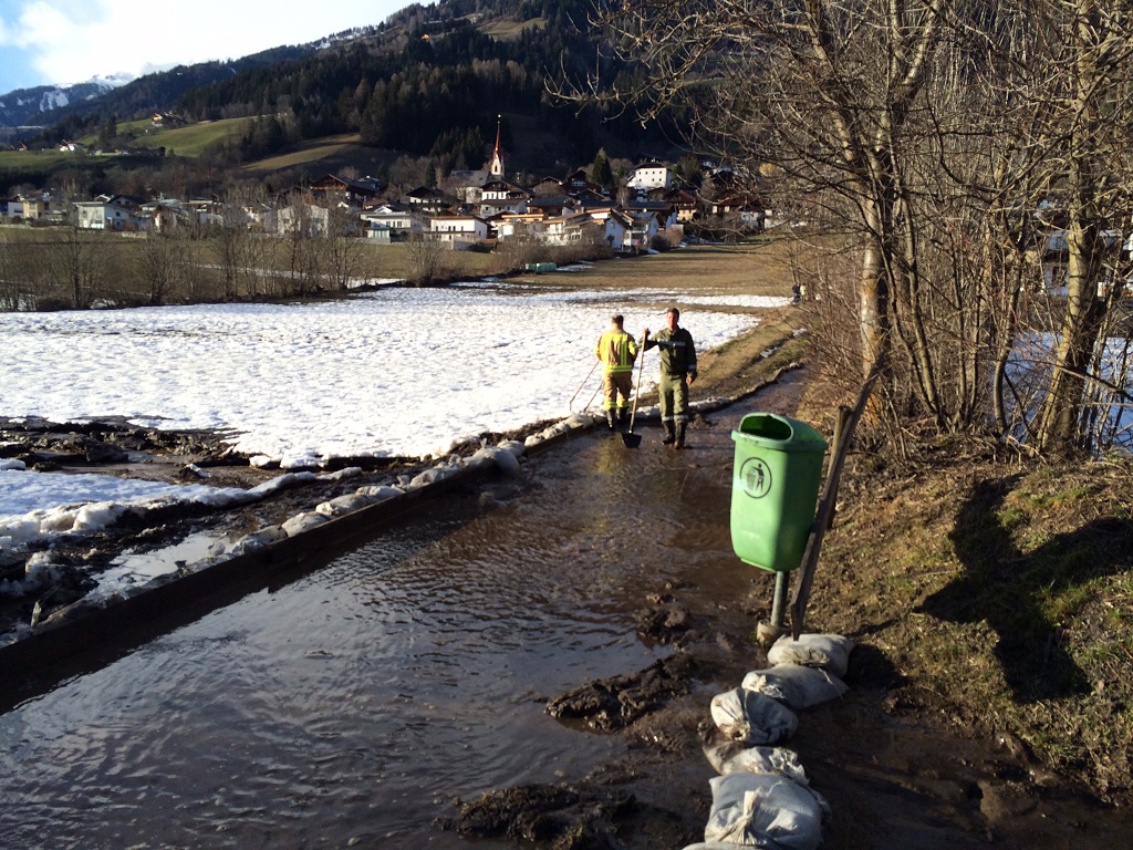 Am Sonntag, den 16. März, um 11.53 Uhr wurde unsere Feuerwehr mittels Pager und Sirene zu einem Murenabgang alarmiert. Beim Eintreffen stellte sich heraus, dass der sogenannte Hackach-Bach beim Zwislinger Bauer die Straße in einer Breite von 15 m ca. 1 m hoch verlegt hatte. Daraufhin wurde die Gemeindestraße aus Sicherheitsgründen gesperrt und zur Beobachtung wurde dann alle 30m ein Posten aufgestellt. Da aber weitere Hangrutschungen erfolgten und der Bach sich immer wieder verklauste, wurden Gärten bzw. der Radweg verschlammt. Deshalb mussten wir mit Schaufel und Bagger für Ordnung sorgen und auch mehrere Bäume mit der Motorsäge beseitigen. Damit die Hofbesitzer wenigstens für kurze Zeit zu ihren Häusern kamen, wurde die Fa. Mangweth für den Abtransport des Schlammes angefordert. Nächster Schwerpunkt war dann der Radweg, wo wir mit Sandsäcken ein Bachbett bauten. Die Straße und der Radweg bleiben bis auf weiteres gesperrt. Nach Rücksprache mit dem Bürgermeister und der Wildbachverbauung konnten wir gegen Abend wieder ins Gerätehaus einrücken.