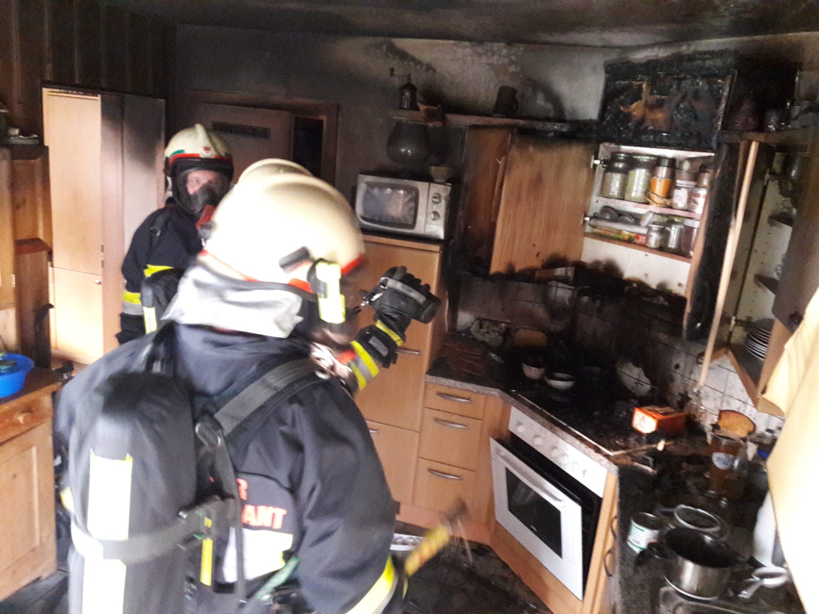 Am 11.03.2019 um 15.09 Uhr wurde unsere Wehr mittels Sirene und Pager zu einem Brandeinsatz gerufen. Laut Alarmtext brach in einem Mehrfamilienhaus ein Brand aus. Nach Eintreffen am Einsatzort, und sofortiger Erkundung der Lage durch den Einsatzleiter, stellte sich heraus, das das Erdgeschoss des betroffenen Hauses bereits stark verraucht war und eine weitere Erkundung nur mittels Atemschutz möglich war. Daraufhin begab sich 1 Atemschutztrupp in das Obkekt und suchte mit der Wärmebildkamera nach dem Brandherd. Dieser konnte schliesslich in der Küche im Bereich des Kochfeldes ausfindig gemacht werden. Aufgrund der Tatsache, das das Feuer bereits selbst erloschen war, konnte auf den Einsatz von Löschwasser verzichtet werden. Somit konnten wir unser Augenmerk auf die Belüftung des Objektes richten. Nach ca. 1 1/2 Stunden waren unsere Arbeiten erledigt und die Mannschaft konnte wieder in das Gerätehaus einrücken. Ebenfalls im Einsatz standen die Drehleiter Lienz, das Rote Kreuz Lienz, sowie die PI Lienz.