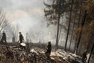 Nach Ablöschen des oberen Brandgebietes wurde noch der gesamte Bereich mit unserer Wärmebildkamera auf eventuelle Glutnester überprüft.