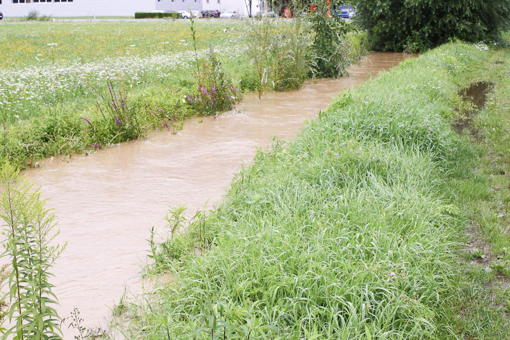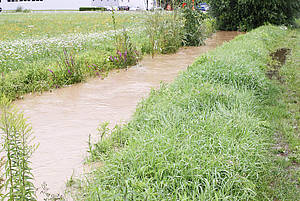 In der Zwischenzeit machte sich das Kommando noch ein Bild vom Oberlauf des Wartschenbaches. Hierbei wurden der Wasser- und die Materialstände in den Auffangbecken (Grissmann-, Waldner-, und Korberbeckens) sowie des Wartschenbach-Unterlaufes vom Waldnerbecken bis zur Bundesstraße kontrolliert.