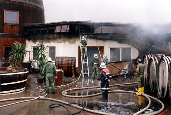 Beim Eintreffen der Freiwilligen Feuerwehr Nußdorf-Debant stand das Betriebsgebäude bereits in Vollbrand. Das Feuer breitete sich rasch in die im Untergeschoß gelegenen Lagerräume in denen Eichen- und Kunststofffässer gelagert waren, aus. Weiters stand binnen kurzer Zeit die Dachkonstruktion (Nagelbinderkonstruktion mit ca. 2.000 m² Blecheindeckung) in Vollbrand.