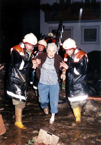Unwahrscheinliches Glück hatten die Bewohner. Sie konnten sich zum Teil selbst in Sicherheit bringen. Alle standen große Ängste aus, bis sie von den Feuerwehrleuten aus ihrer bedrohlichen Lage befreit wurden. Gott sei Dank verlief das Katastrophen-ereignis ohne Schaden an Menschenleben. Ein Bild der Verwüstung bot sich den Feuerwehren. Tausende Kubikmeter Geröll und Schlamm mit vielen mit-geschwemmten Baumstämmen bedeckten die Fluren. Bei den zwei nur über den Wartschenbach erreichbaren Höfen JAGGLER, vlg. Eder und PRESSLABER, vlg. Wartscher wurden die Brücken weggerissen. Die Tschapplerbrücke wurde ebenfalls in Mitleidenschaft gezogen. Bei den über Tage andauernden Aufräumungsarbeiten mussten von Arbeitsgeräten und händischem Einsatz unter Mithilfe des Bundes-heeres, der Bevölkerung und der Feuerwehr an die 40.000 m³ Geröllmassen entfernt werden.
