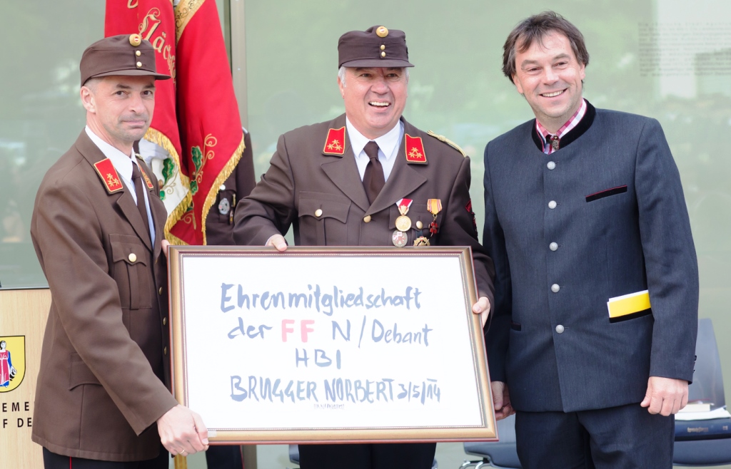Unter die Dienstzeit unseres ehemaligen Kommandanten fallen aber auch erfreuliche, wenn auch mit viel Arbeit verbundene, Großereignisse. 1996 konnte das 100-jährige Bestehen unsere Feuerwehr gefeiert werden. 1997 wurde der 35. Tiroler Landesfeuerwehrleistungsbewerb gemeinsam mit den Kameraden der Feuerwehr Gaimberg organisiert. Bei dieser Großveranstaltung wurden der Kommandant gemeinsam mit Bezirksfeuerwehrkommandant Draxl vom Delegationsleiter der deutschen Feuerwehrgruppen mit der Medaille für internationale Zusammenarbeit ausgezeichnet. Den Höhepunkt in der Karriere unseres "Alt Kommandanten" stellte die Verleihung des Verdienstzeichens in Bronze des österreichischen Feuerwehrverbandes im Jahre 2002 dar.
